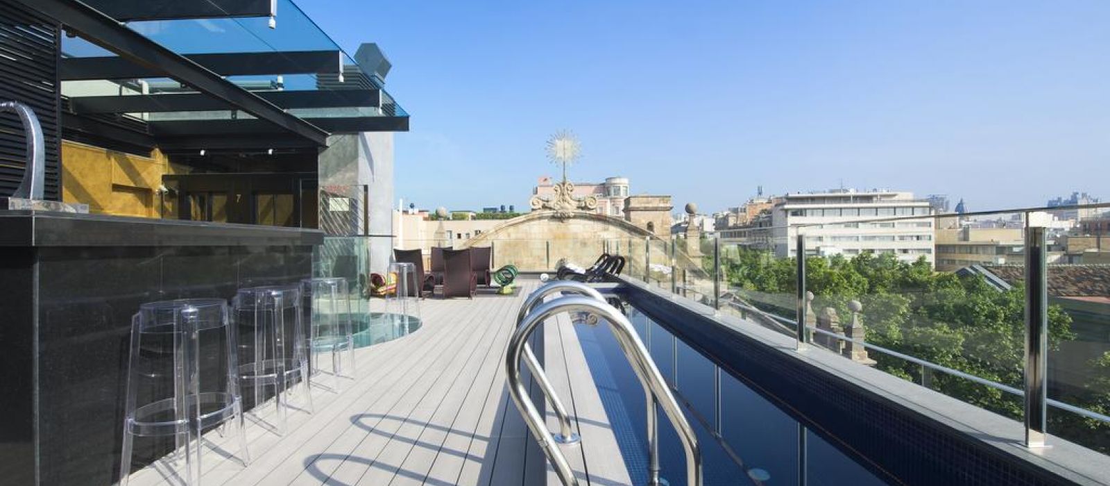 Les chambres sont décorées dans des tons riches, avec un mobilier d’ébène et des détails à la feuille d’or. Elles comprennent une station d'accueil pour iPod, une télévision par satellite à écran plat et un minibar avec des boissons sans alcool gratuites. La plupart des logements offrent une vue sur les Ramblas.