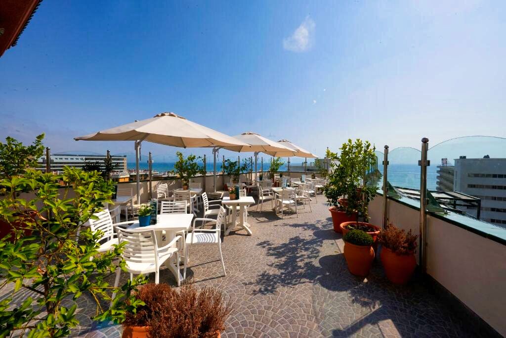 Le toit-terrasse avec bar chill-out est un lieu agréable pour commencer la soirée ou simplement profiter d’un moment tranquille avec vue sur la mer.