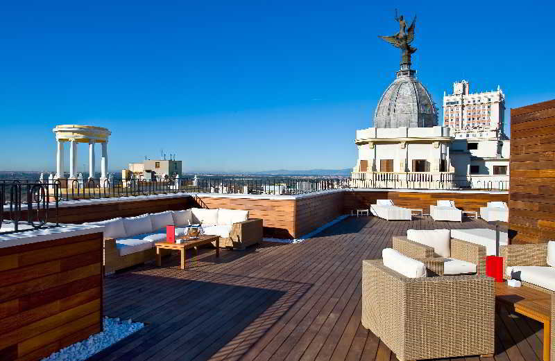Pour vos repas, l'hôtel propose un petit-déjeuner buffet varié, servi dans un cadre agréable. Vous pourrez également profiter du bar sur le toit, offrant une vue imprenable sur la ville, idéal pour siroter un cocktail en admirant le coucher de soleil sur Madrid.