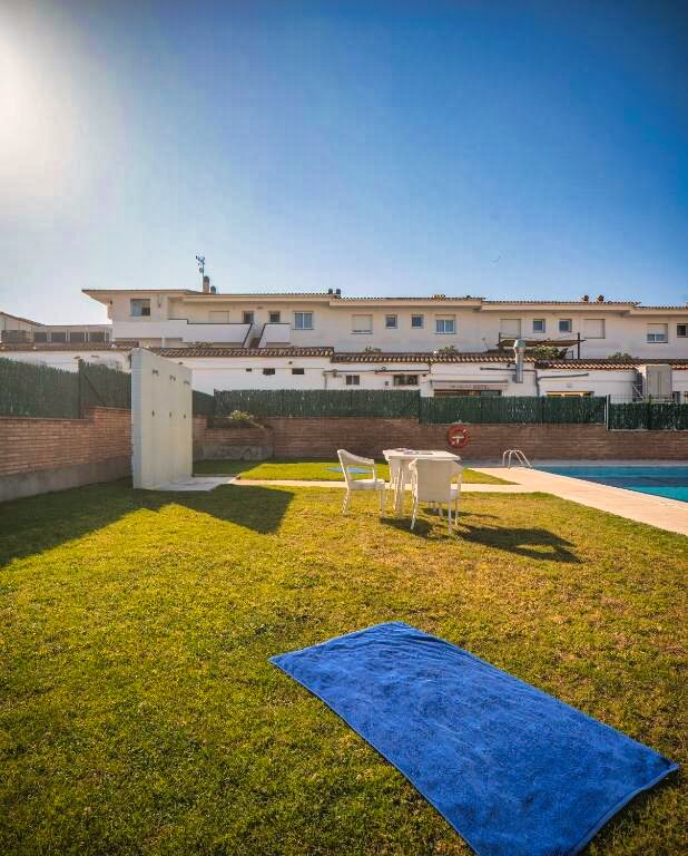 Les espaces collectifs incluent une piscine extérieure entourée de transats, idéale pour se détendre sous le soleil espagnol.