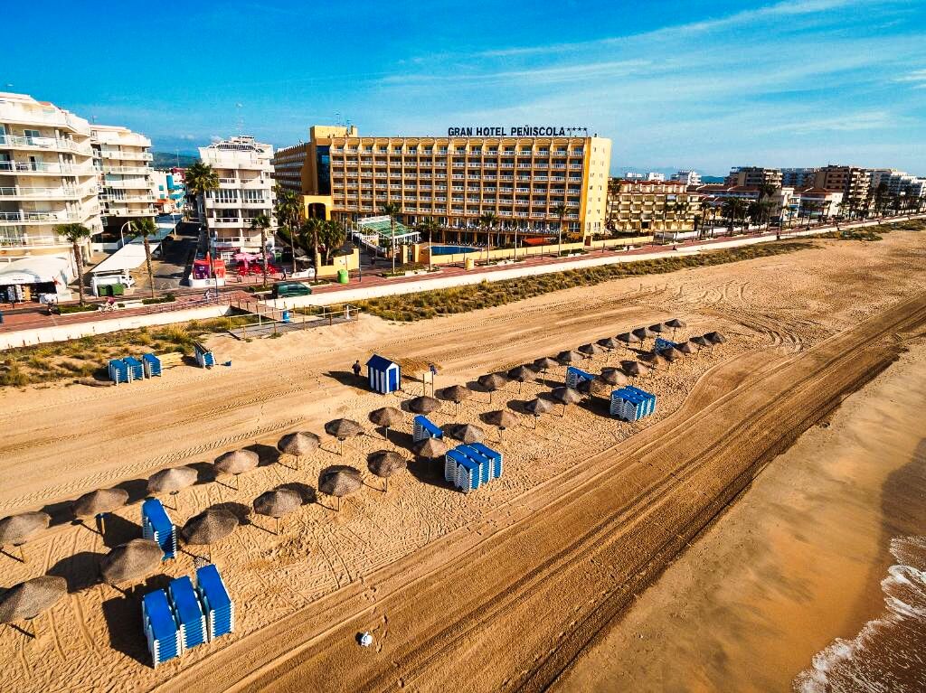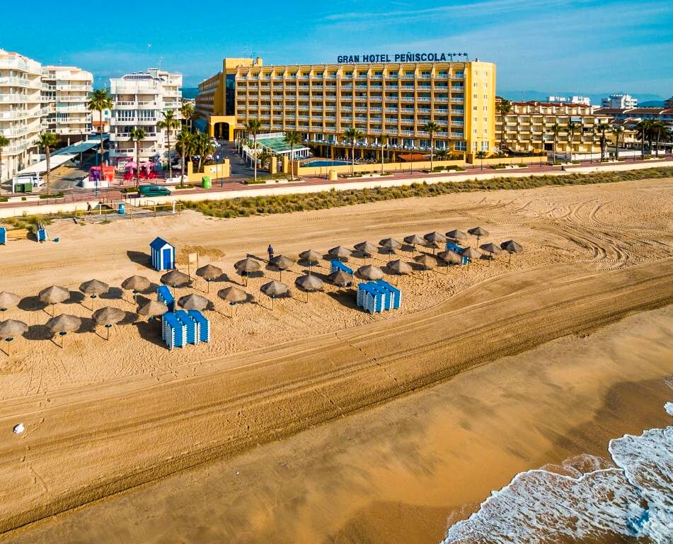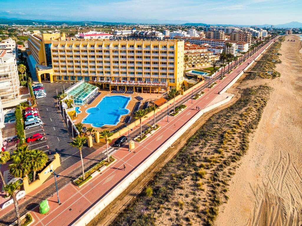Le Gran Hôtel Peñíscola est situé à Peñíscola, sur la Costa Azahar, à quelques minutes à pied de la plage principale et de la promenade maritime. Son emplacement central permet d’accéder facilement aux commerces, restaurants, bars et services du centre-ville, tout en restant proche de la mer Méditerranée. L’hôtel constitue une base idéale pour découvrir Peñíscola à pied, notamment sa vieille ville pittoresque et son célèbre château.