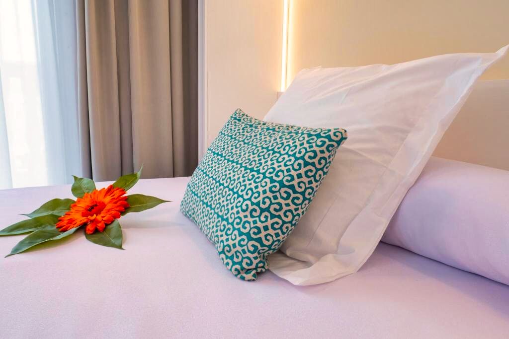 L’établissement propose des chambres confortables et bien aménagées, adaptées aux séjours en couple, en famille ou entre amis. Chaque chambre dispose d’une salle de bain privative et d’un agencement pensé pour offrir un séjour agréable. Certaines chambres peuvent bénéficier d’un balcon ou d’une terrasse selon disponibilité, offrant un espace extérieur agréable pour se détendre après une journée à la plage ou de visites.