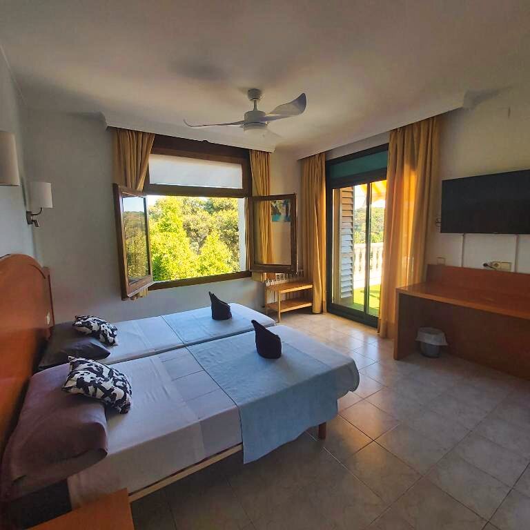 L’aéroport de Gérone – Costa Brava se situe à environ 30 kilomètres et celui de Barcelone – El Prat à environ 100 kilomètres. La gare la plus proche est celle de Caldes de Malavella ou de Flaçà, avec des liaisons vers les principales destinations de la Costa Brava. L’accès en voiture est simple via l’autoroute AP-7 puis les routes côtières menant à Lloret de Mar, avec des possibilités de stationnement à proximité de l’hôtel.