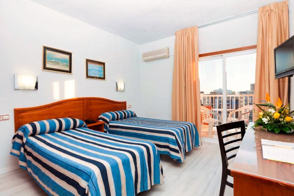 L’hôtel propose des chambres confortables et bien aménagées, pensées pour offrir un séjour agréable aux voyageurs. Selon la catégorie choisie et la disponibilité, certaines chambres peuvent offrir différentes configurations ou des vues variées. Chaque chambre est aménagée pour garantir une atmosphère reposante après une journée à la plage ou à explorer Benidorm et ses environs.