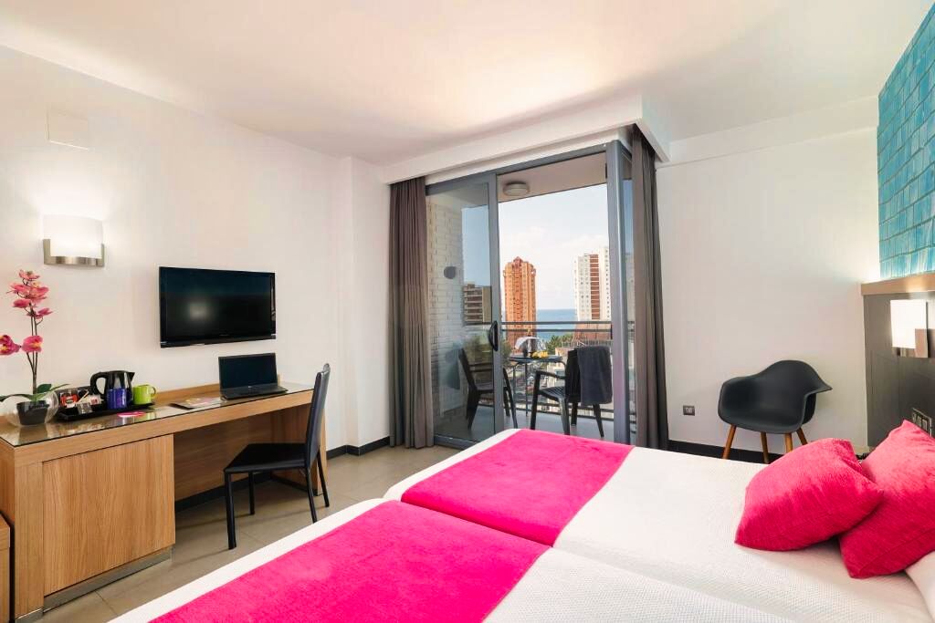 L’hôtel propose des chambres modernes et bien aménagées, pensées pour offrir une expérience confortable et stylée aux voyageurs adultes. Selon la catégorie choisie et la disponibilité, certaines chambres peuvent offrir des vues sur la ville ou les environs. Chaque chambre est conçue pour garantir une atmosphère reposante après une journée à la plage ou à explorer les alentours de Benidorm.