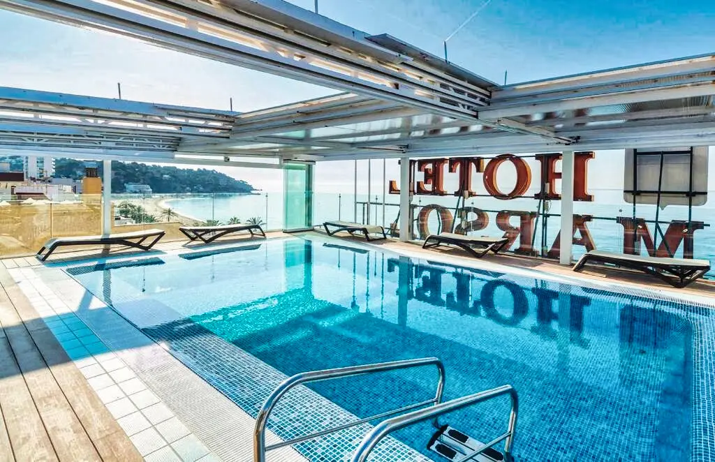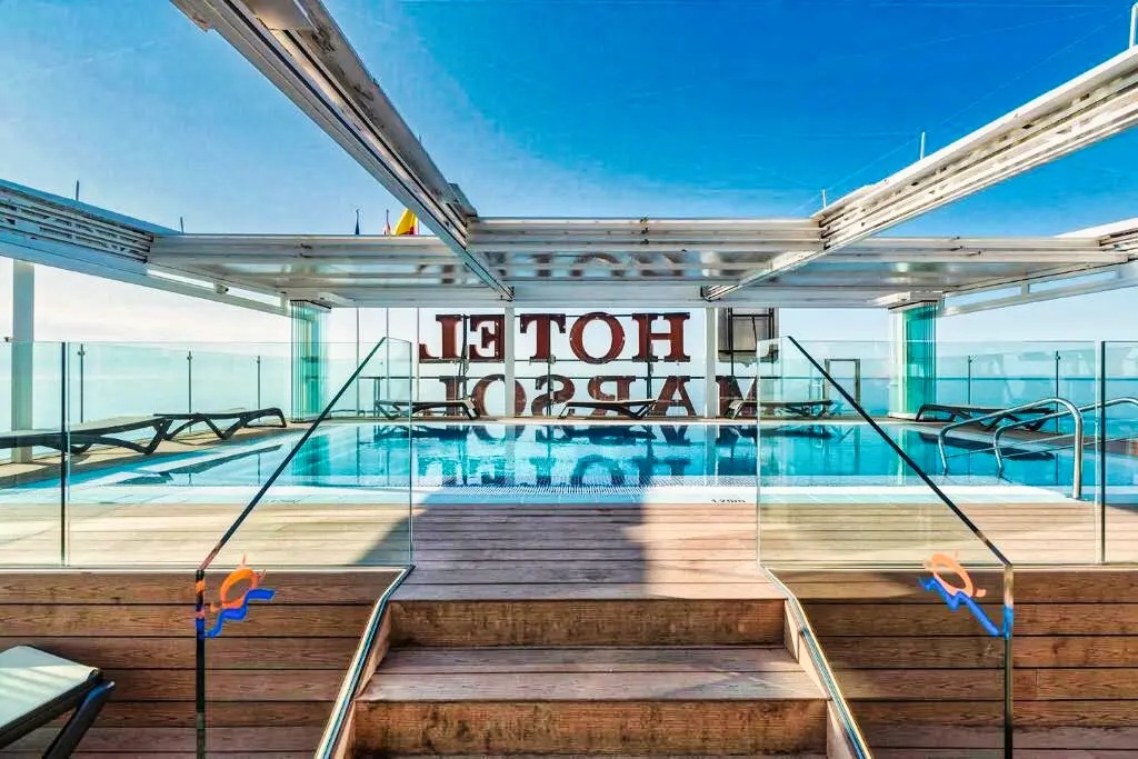 L’Hôtel Marsol 4★ dispose d’une piscine extérieure sur le toit, offrant une vue panoramique sur la mer, ainsi que d’un solarium aménagé avec transats. Un espace bien-être avec piscine intérieure, sauna et salle de sport est également à disposition. Les services proposés incluent une réception ouverte 24h/24, le wifi gratuit dans tout l’établissement, une bagagerie, un ascenseur et un service de blanchisserie (en supplément), garantissant un séjour confortable et serein.