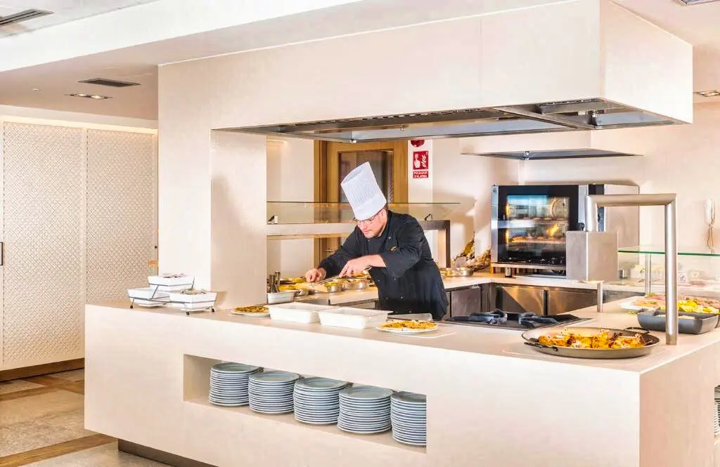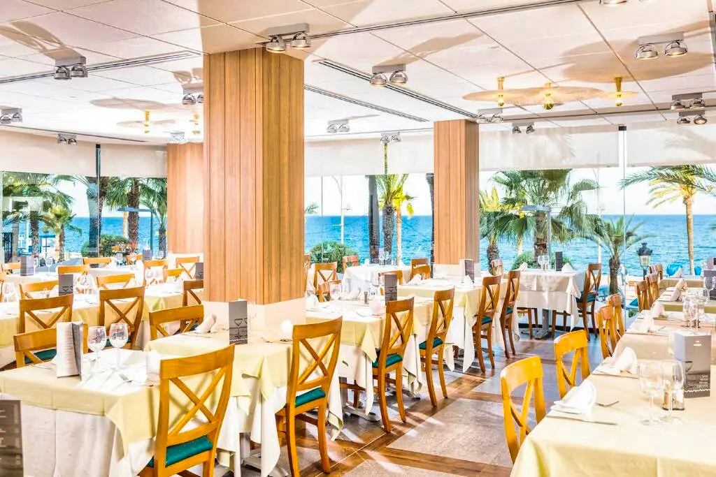 Le restaurant de l’hôtel propose une restauration sous forme de buffet, mettant à l’honneur une cuisine méditerranéenne et internationale variée. Des options végétariennes et sans gluten sont disponibles sur demande. L’Hôtel Marsol propose différentes formules de séjour incluant le petit-déjeuner, la demi-pension et la pension complète. Un bar complète l’offre pour savourer un verre dans une ambiance conviviale, face à la mer ou en intérieur.