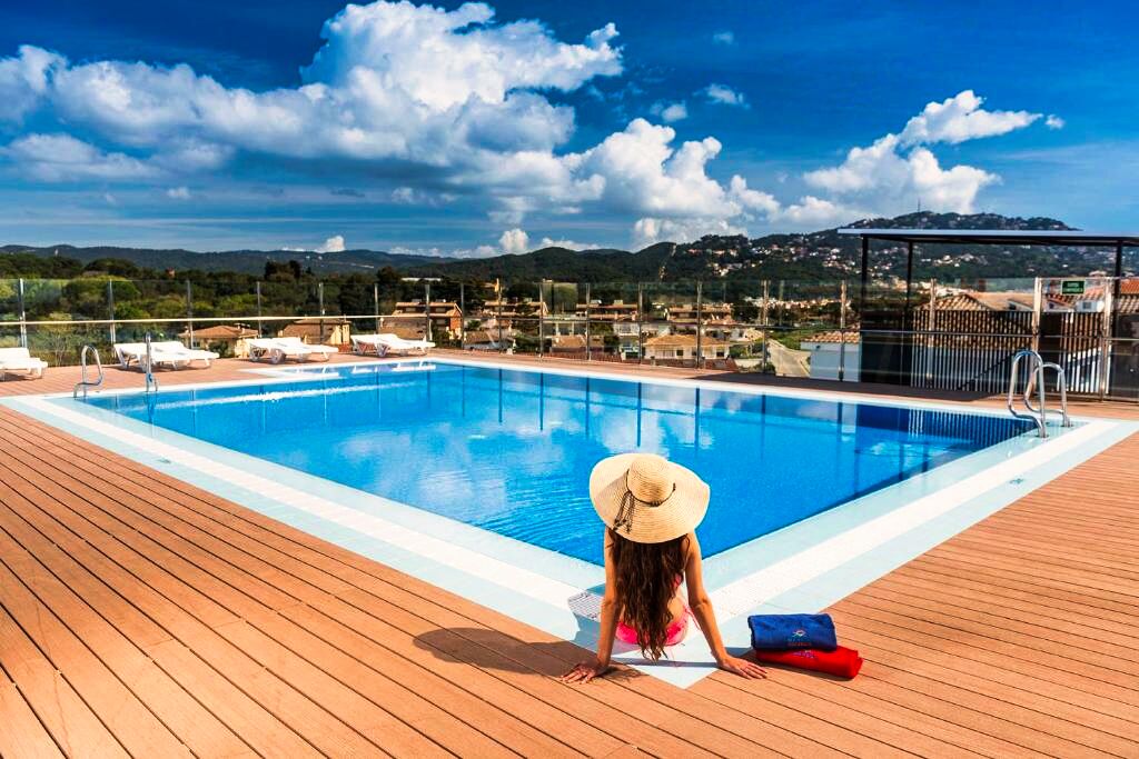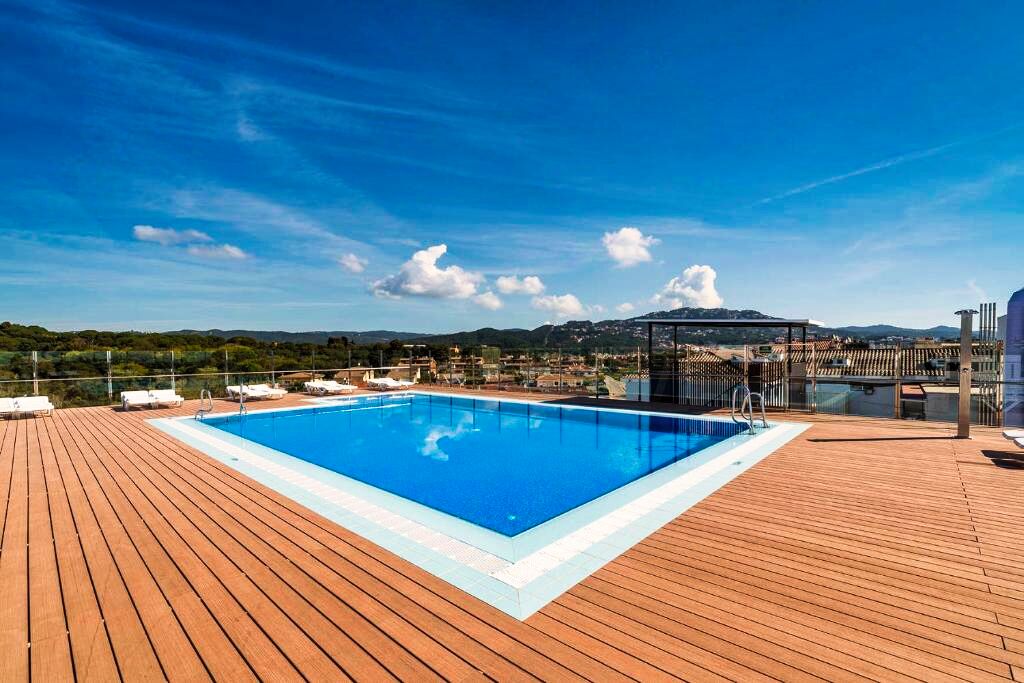L’aéroport de Gérone – Costa Brava se situe à environ 30 kilomètres et celui de Barcelone – El Prat à environ 100 kilomètres. La gare la plus proche est celle de Caldes de Malavella ou de Flaçà, avec des liaisons vers les principales destinations de la Costa Brava. L’accès en voiture est simple via l’autoroute AP-7 puis les routes côtières menant à Lloret de Mar, avec des possibilités de stationnement à proximité de la résidence.