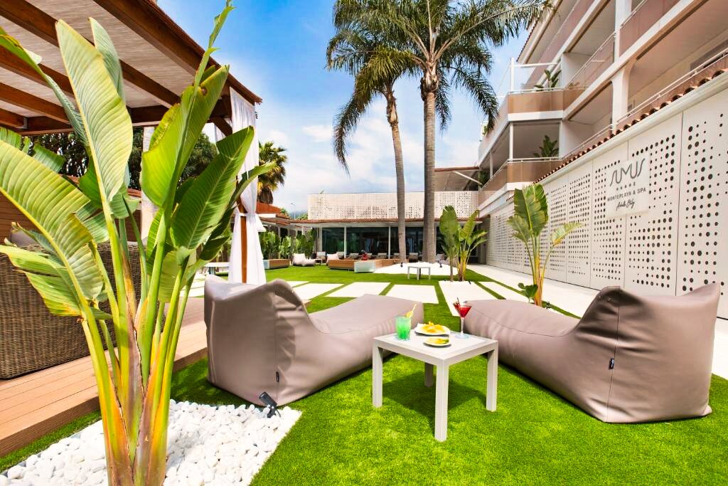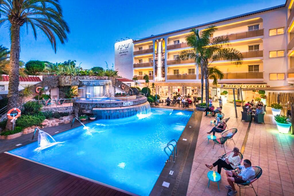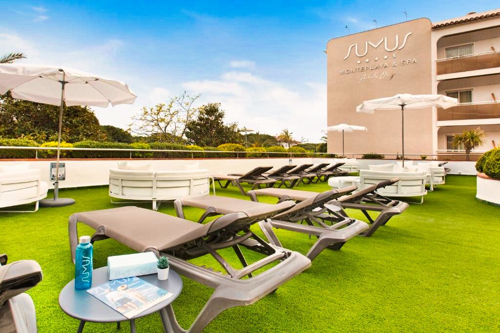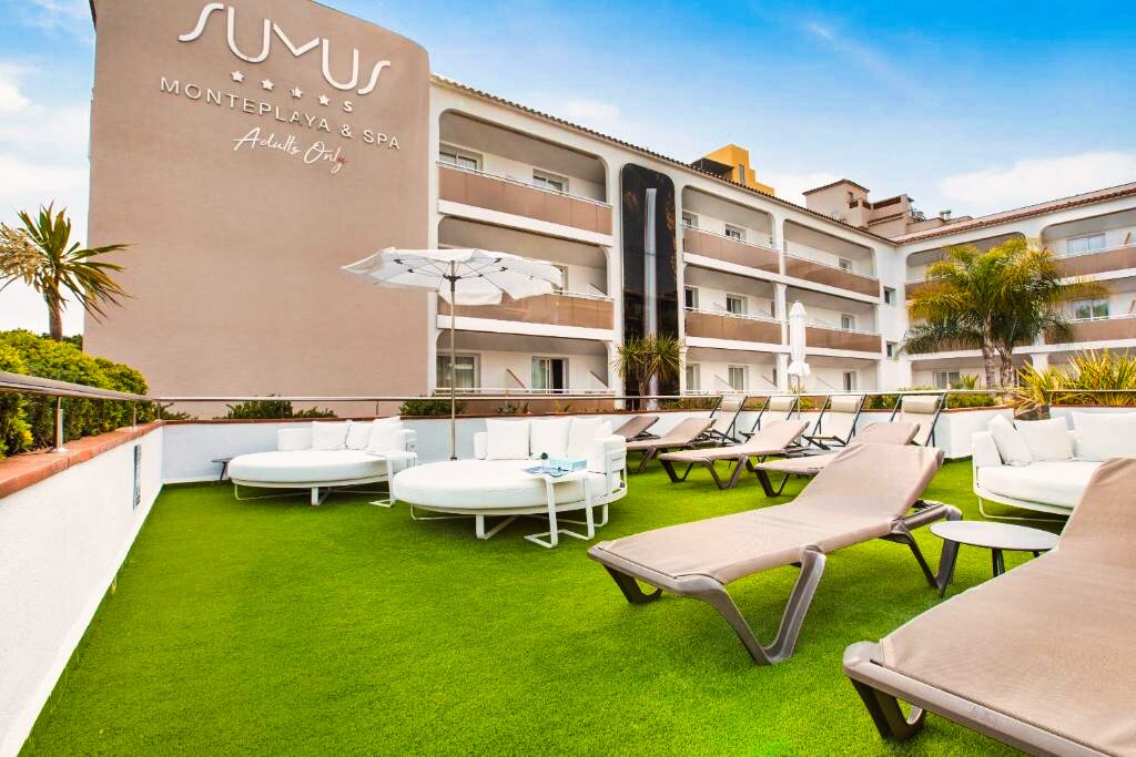 Le Sumus Hotel Monteplaya 4★ Sup offre des installations de qualité pensées pour la détente et le confort. Il dispose de deux piscines extérieures : l’une principale entourée de transats et de parasols, et l’autre plus calme pour un moment de relaxation. Un espace bien-être avec jacuzzi, massages et soins du corps (en supplément) complète l’offre, ainsi qu’une salle de sport équipée. L’hôtel propose également des animations douces en soirée telles que de la musique live ou des spectacles légers, toujours dans une ambiance sereine.