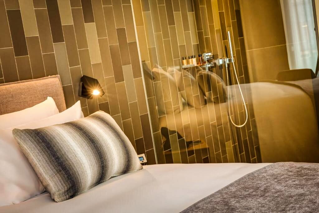 Les chambres de l’Ohla Eixample sont spacieuses, lumineuses et décorées dans un style contemporain aux lignes épurées. Toutes disposent de parquet, d’une insonorisation soignée, de la climatisation, d’une Smart TV avec Chromecast, d’une machine à café Nespresso, d’un minibar, d’un coffre-fort et d’une connexion Wi-Fi haut débit. Les salles de bains comprennent une douche pluie ou une baignoire selon les catégories, un sèche-cheveux, des peignoirs et des articles de toilette haut de gamme. Certaines chambres bénéficient d’une terrasse ou d’une vue paisible sur le patio intérieur, offrant un cadre reposant en plein centre-ville.