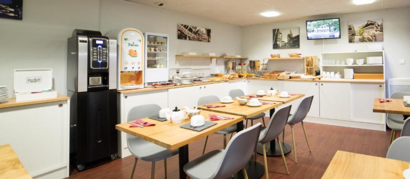 Le Cerise Strasbourg propose un petit-déjeuner buffet quotidien, un service de blanchisserie, un local à vélos et un parking surveillé situé sur place. Vous pourrez prendre vos repas dans l’un des restaurants partenaires de l’établissement, réserver un panier-repas sur place ou vous faire livrer pour manger dans le confort de votre chambre.