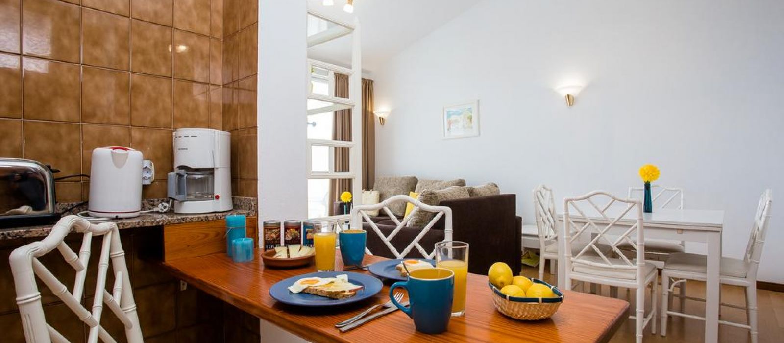 Chaque appartement indépendant donne sur les jardins ou l'océan. Les appartements de 2 chambres possèdent en outre un balcon. Tous les appartements comprennent une cuisine et un salon.