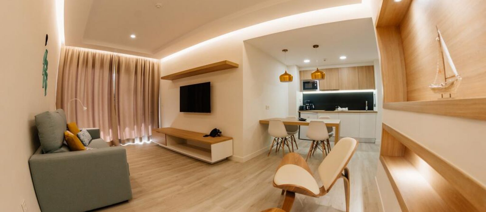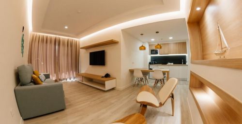 Chaque logement dispose d'un balcon, d'une télévision par satellite à écran plat, d'un coin salon, d'une cuisine bien équipée et d'une salle de bains privative avec douche, sèche-cheveux et articles de toilette gratuits. Vous pourrez profiter d'un micro-ondes, d'un réfrigérateur, d'un grille-pain, d'une bouilloire et d'une machine à café.