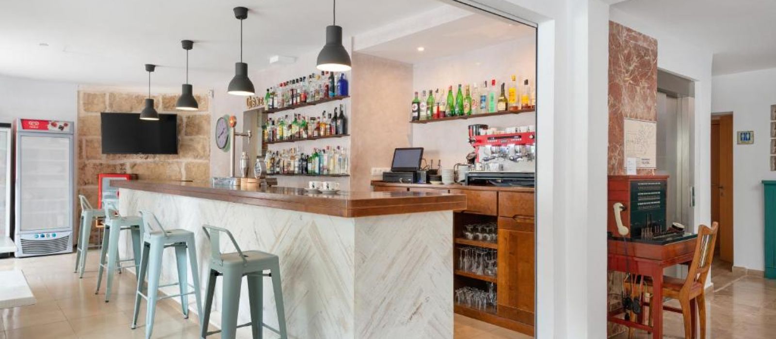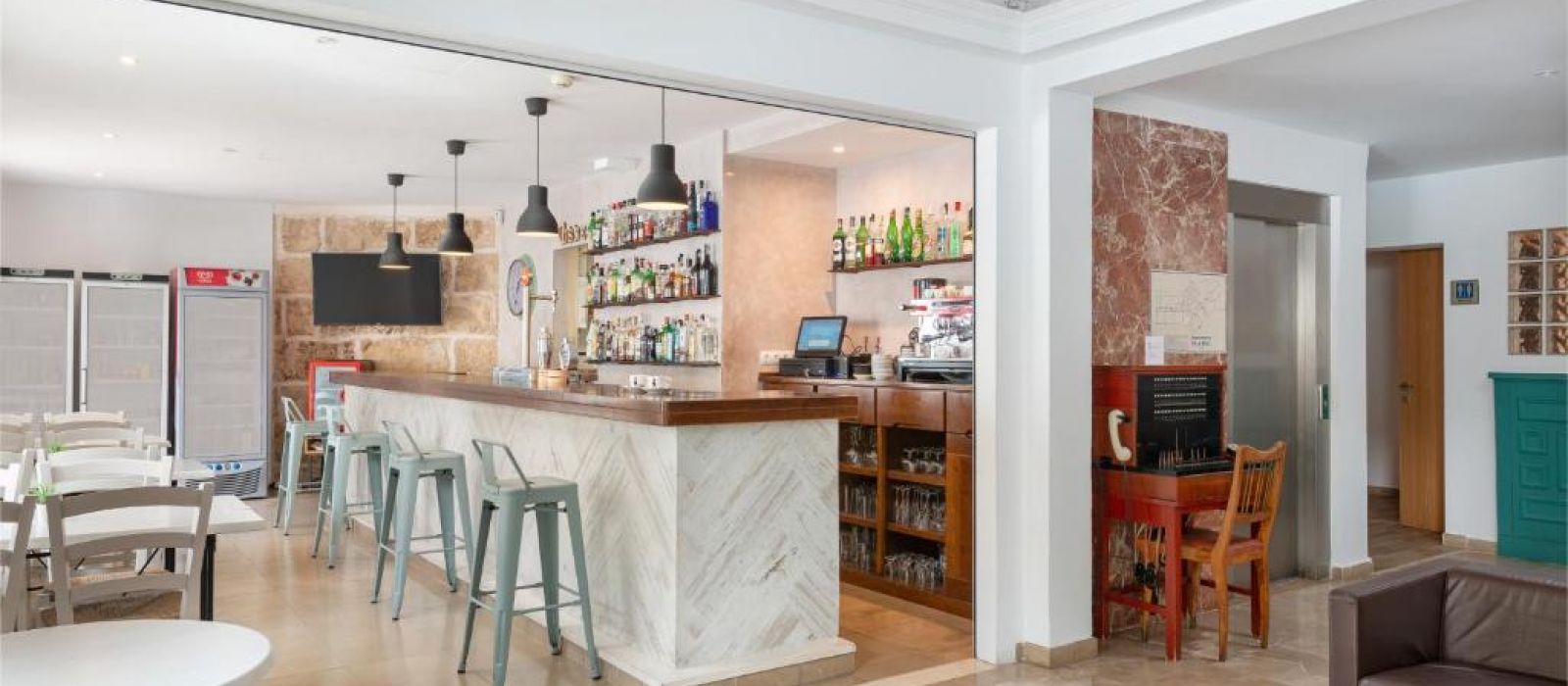 L'établissement possède un snack-bar et une terrasse.