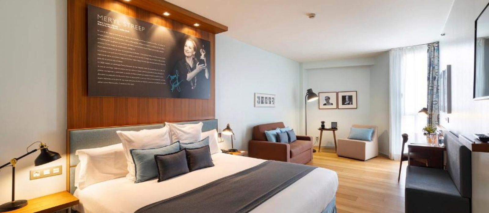 Décoré sur le thème du cinéma et du festival du film de Saint-Sébastien, l’Hotel Astoria7 propose des chambres dotées d’une connexion Wi-Fi gratuite et d’une télévision à écran plat. Chaque hébergement est dédié à un acteur ou un réalisateur ayant visité la ville.