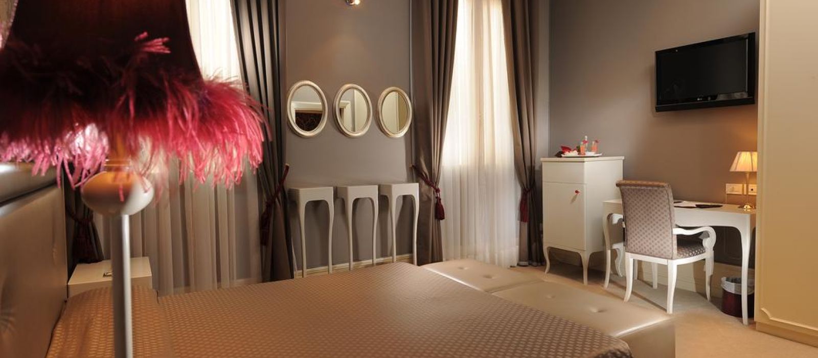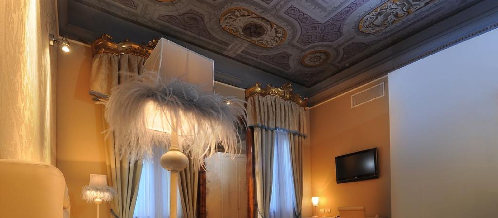 Les chambres élégantes sont équipées de la climatisation, d'un minibar et d'un mobilier raffiné. La plupart disposent d'une salle de bains avec du carrelage en mosaïque Bisazza et une douche hydromassante. Certaines des chambres possèdent également des fresques au plafond et une vue sur le canal.
