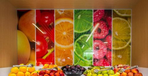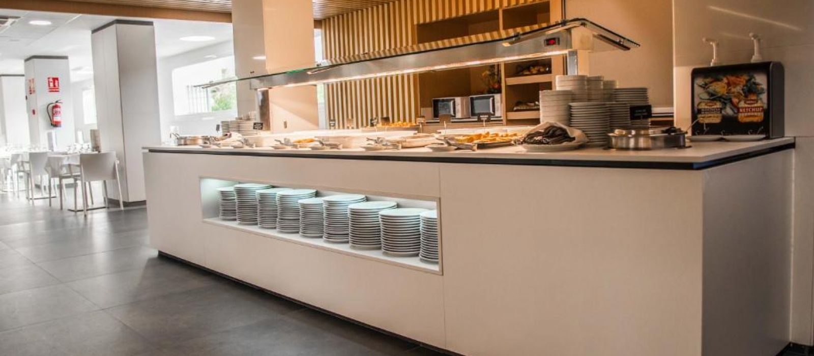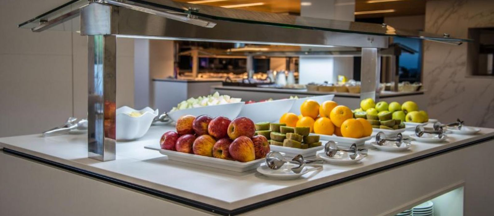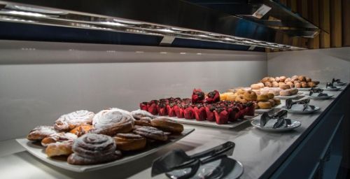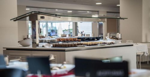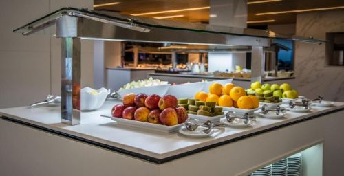 L'hôtel possède un restaurant-buffet, servant des produits frais de la Méditerranée. Des plats sans gluten peuvent être préparés sur demande. Le complexe abrite également un café-bar.