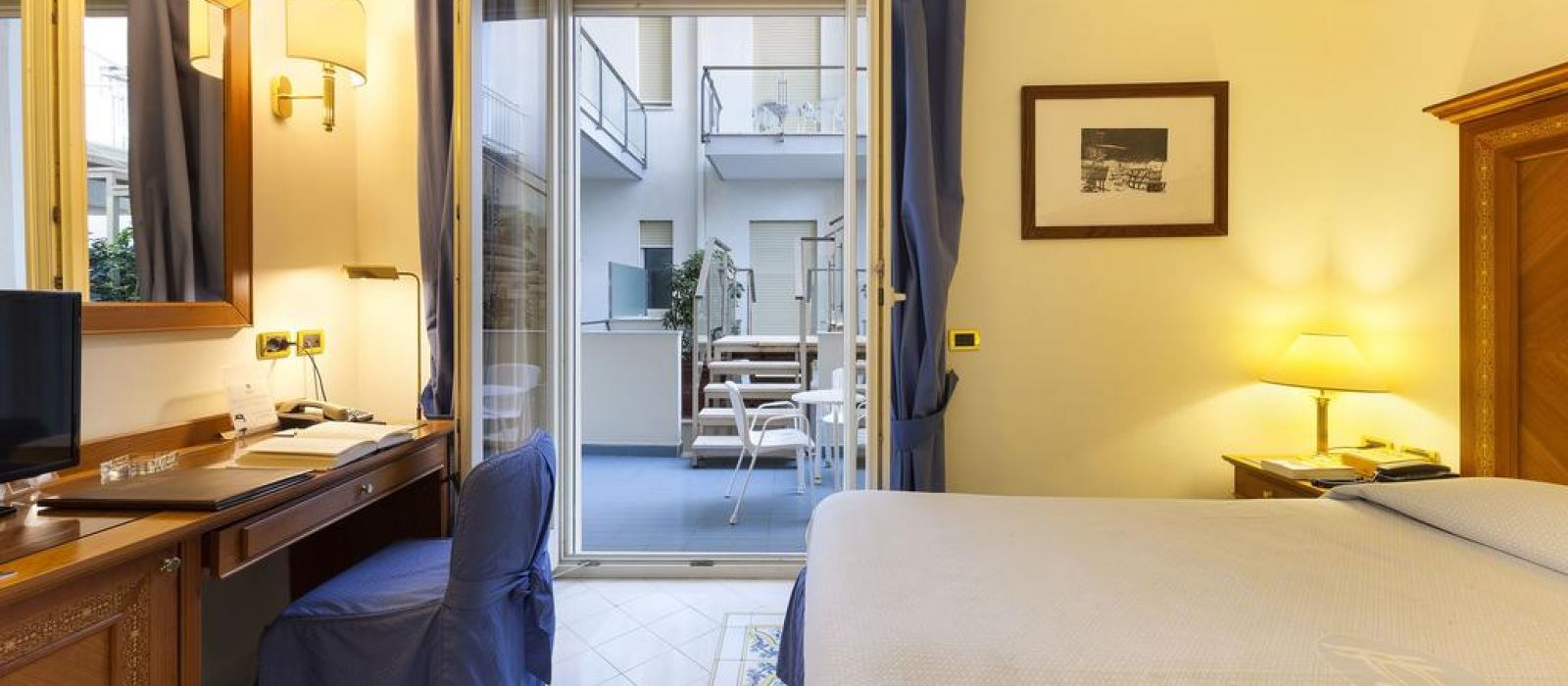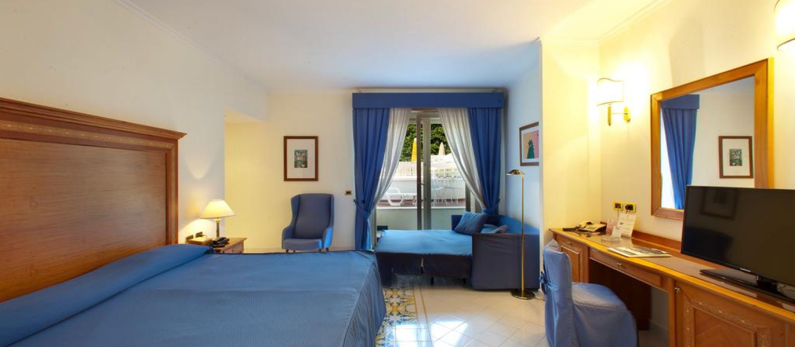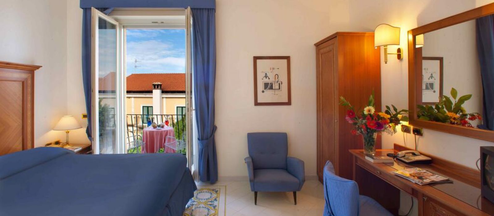 Ses chambres possèdent un mobilier en bois, la climatisation, une télévision par satellite à écran plat et une salle de bains privative pourvue de peignoirs et d'un sèche-cheveux. La plupart des chambres comportent un balcon et certaines donnent sur la mer Méditerranée.