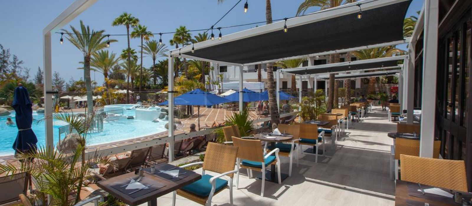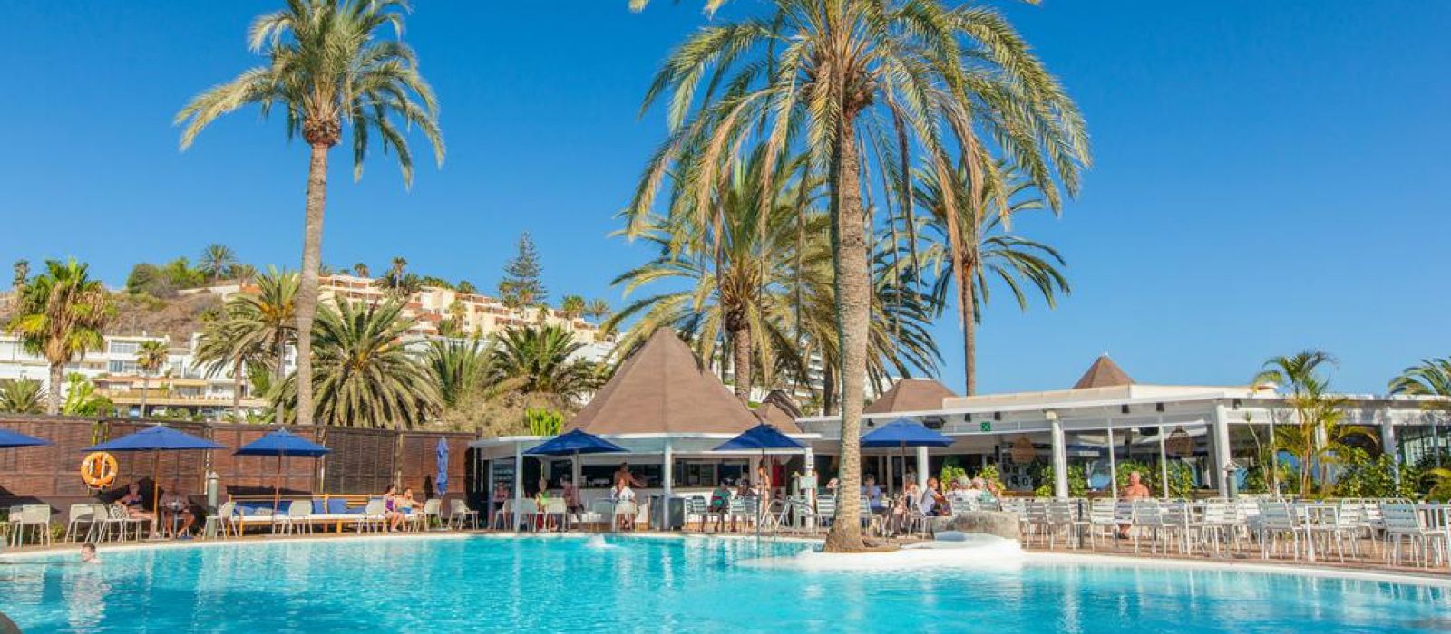Aménagé au cœur d'une végétation tropicale, l'espace baignade comprend deux piscines et deux bains à remous, ainsi que des chaises longues et des parasols à votre disposition gratuitement. Le soir, l'établissement organise régulièrement des concerts et propose parfois des spectacles en soirée ainsi que des animations en journée.