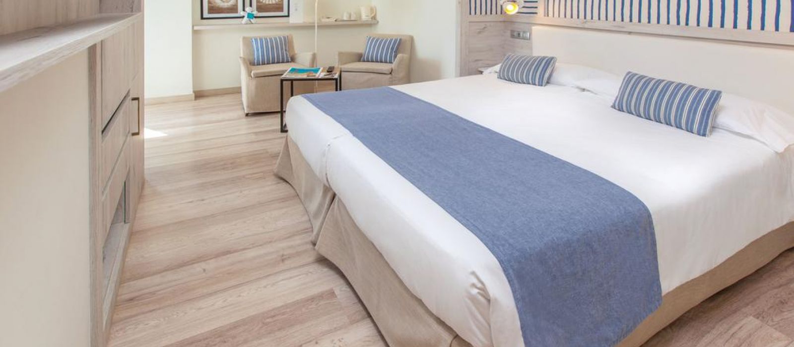 Il comprend 200 chambres lumineuses et spacieuses, la grande majorité offrant une vue directe ou latérale sur la mer. Des chambres avec une plus grande capacité d'accueil sont également disponibles.