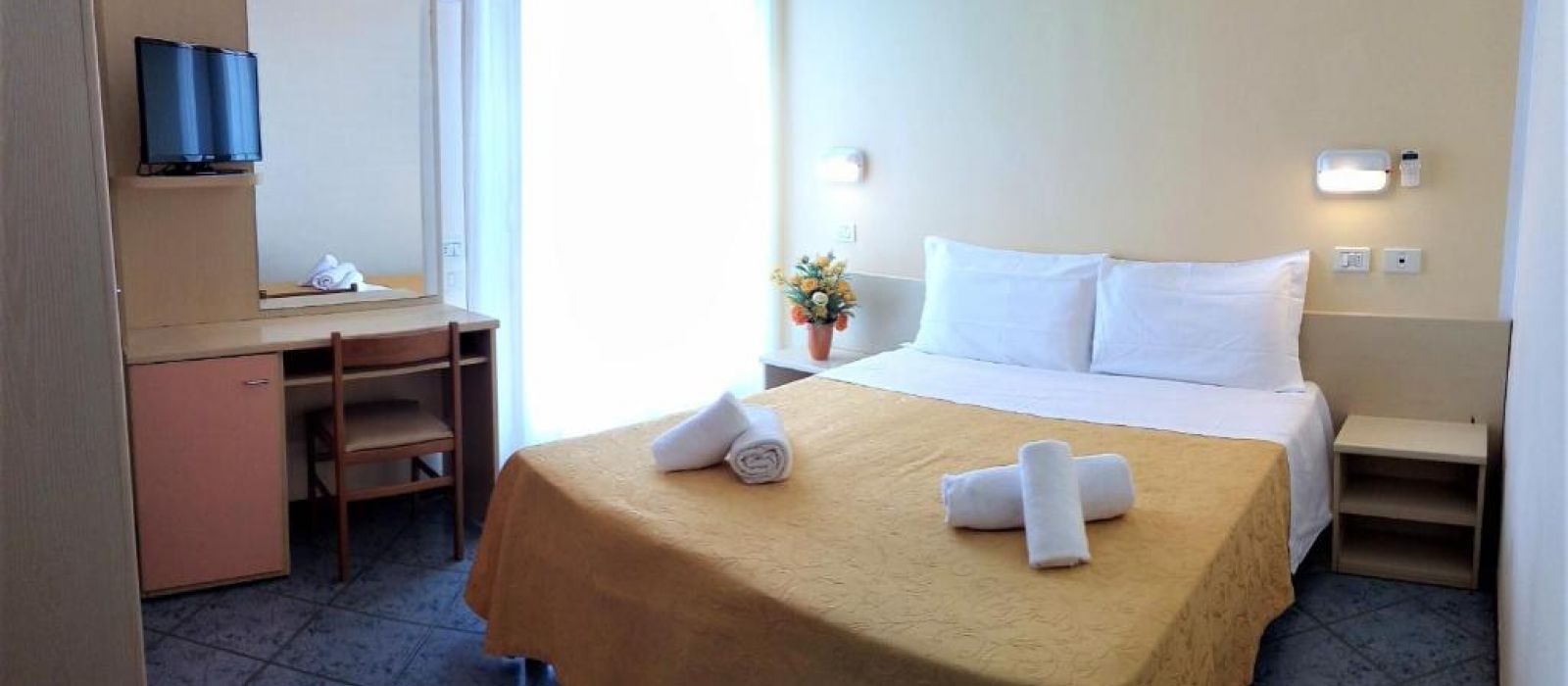 Situé à Rimini, à 150 mètres de Rivazzurra, l'Hotel Corona propose un bar, un parking privé, un salon commun et une terrasse. Il propose une réception ouverte 24h/24, un service de concierge et une connexion Wi-Fi gratuite dans l'ensemble de ses locaux. L'hôtel propose des chambres familiales.