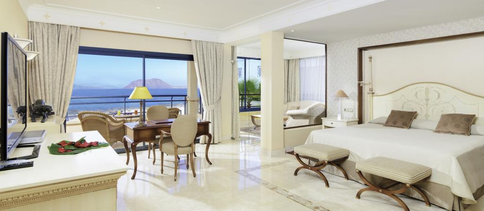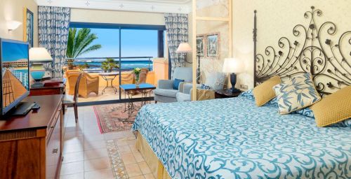 Toutes les chambres sont équipées de la climatisation en été, du chauffage central en hiver, d’une télévision à écran plat, d’un choix d'oreillers et d’un minibar. Certaines chambres ou suites possèdent un coin salon ou un balcon privé donnant sur l’océan Atlantique. Le tarif comprend une entrée au spa de l’hôtel, Bahia Vital, par personne et par séjour. Les chambres peuvent bénéficier de lits jumeaux ou d’un lit double, sous réserve de disponibilité.