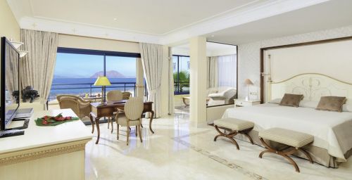 Le Gran Hotel Atlantis Bahía Real G.L est un complexe hôtelier 5 étoiles situé au bord de la plage à Corralejo, sur l’île de Fuerteventura. Il propose 2 piscines extérieures entourées de jardins tropicaux luxuriants, un spa, 6 restaurants, un bar à cocktails et une connexion Wi-Fi gratuite dans l’ensemble des locaux.