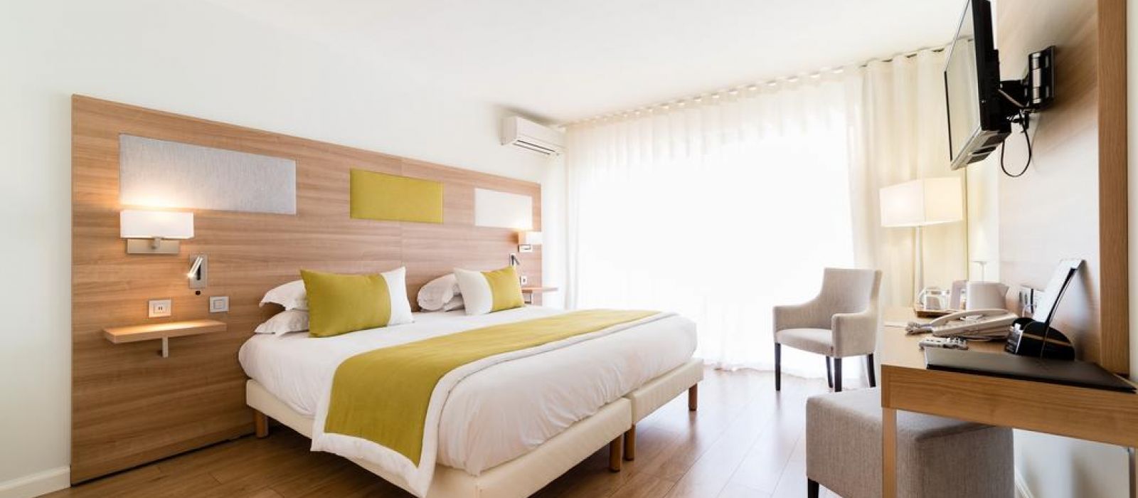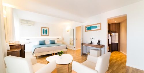 Les chambres modernes sont équipées de la climatisation, d'une télévision par satellite à écran plat et d'un plateau de bienvenue. La plupart d'entre elles sont dotées d'un balcon ou d'une terrasse, tandis que certaines bénéficient d'une vue sur la mer.