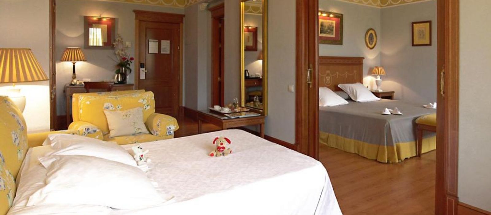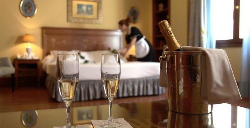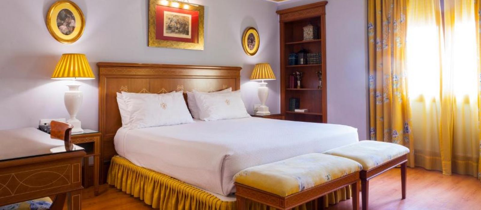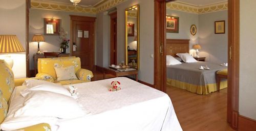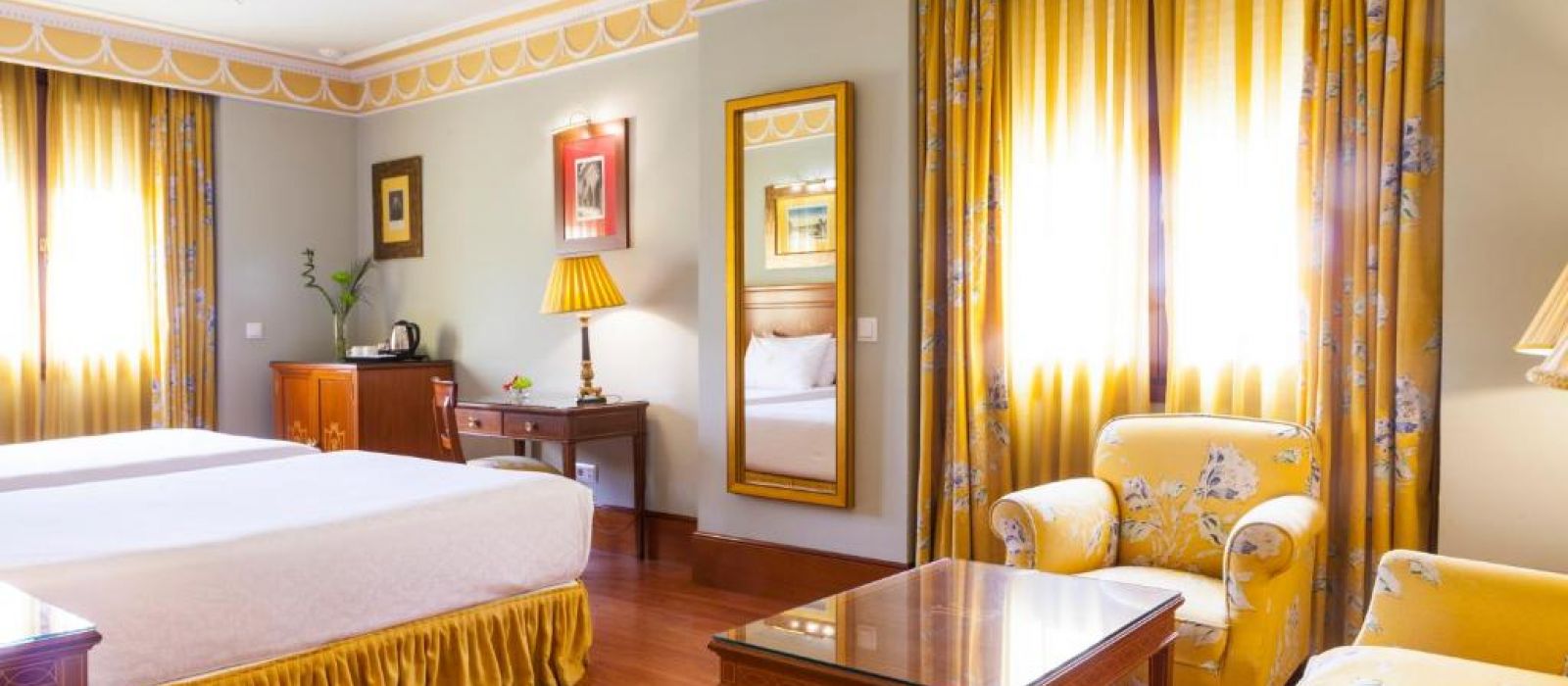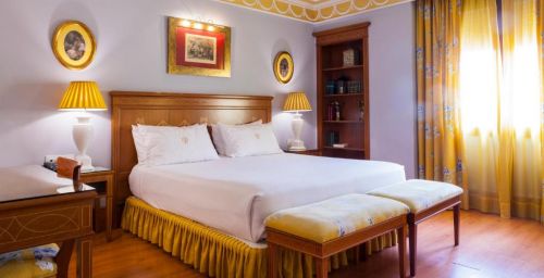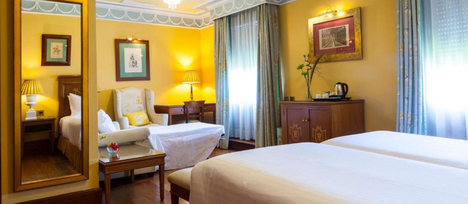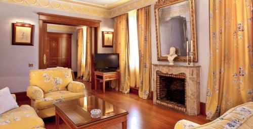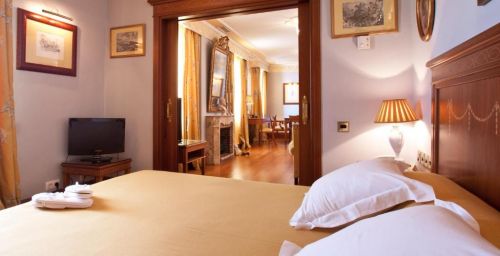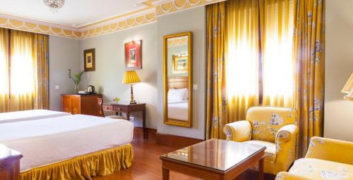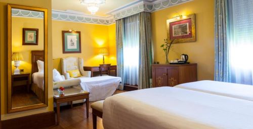 Les chambres spacieuses de l'Hotel Inglaterra sont revêtues de parquet et disposent d'un coffre-fort. Leur salle de bains en marbre est pourvue d'articles de toilette.