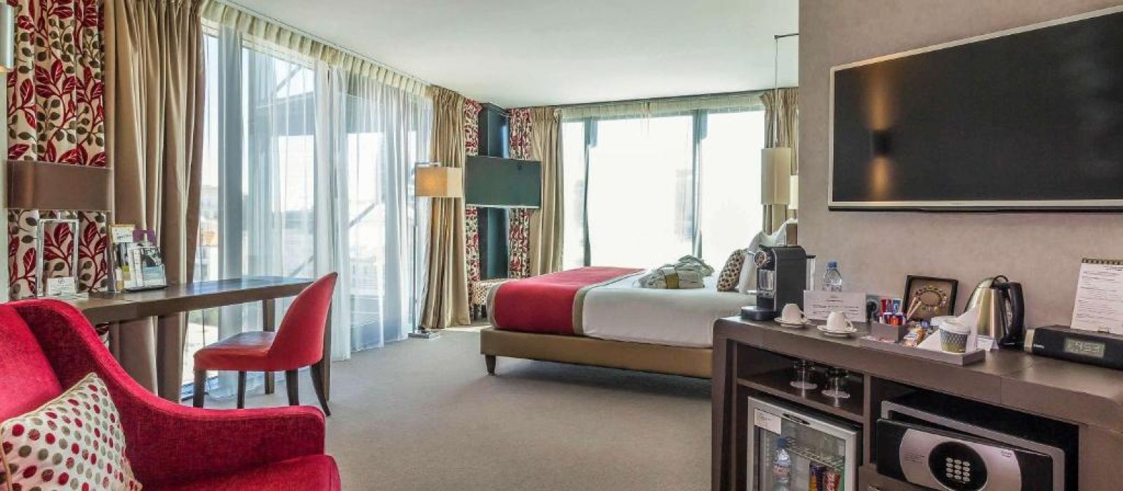 Les chambres du Mercure Clermont Ferrand centre Jaude possèdent une salle de bains privative avec un sèche-cheveux. La connexion Wi-Fi est gratuite.