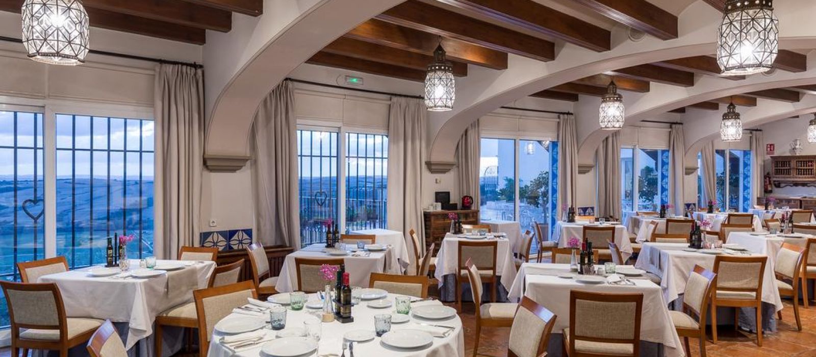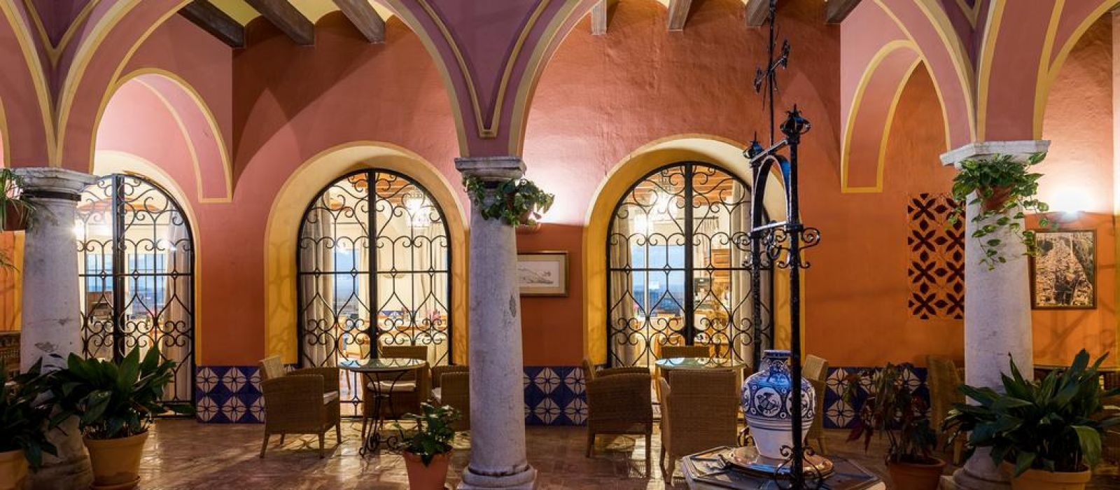 Le Parador de Arcos de la Frontera présente des éléments décoratifs de style traditionnel andalou, notamment une cour intérieure, où vous pourrez vous rafraîchir pendant les chaudes températures estivales.