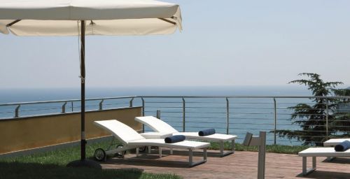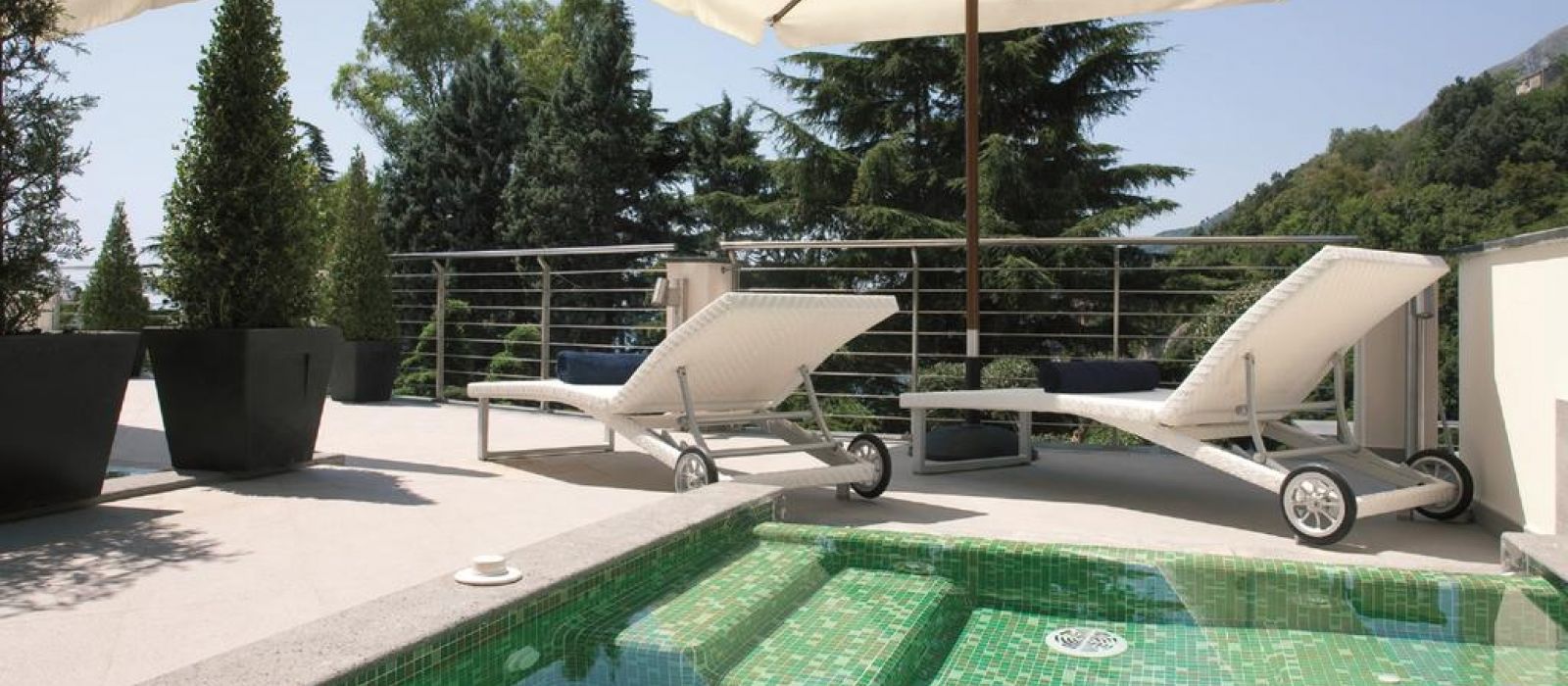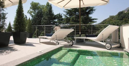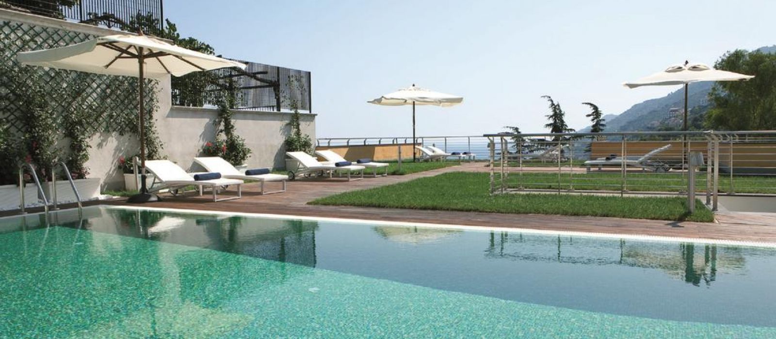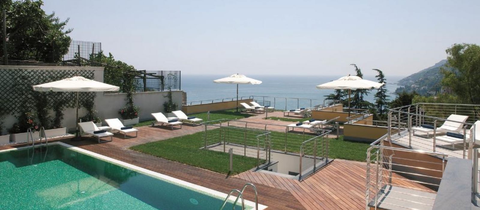La piscine extérieure du Paradiso se trouve sur une terrasse avec un solarium et une vue imprenable sur la mer.