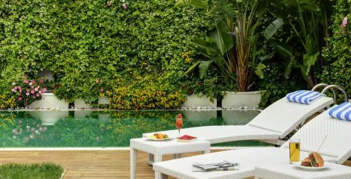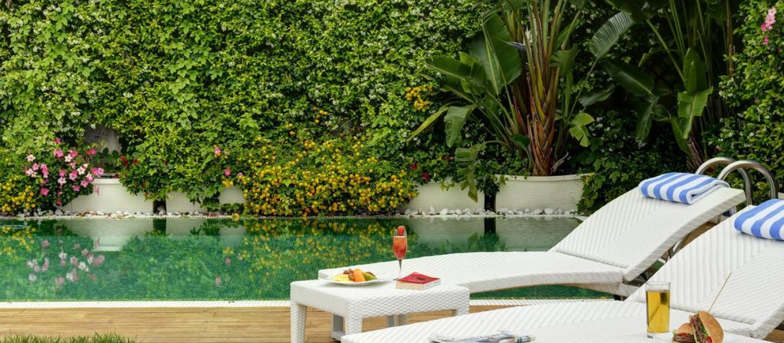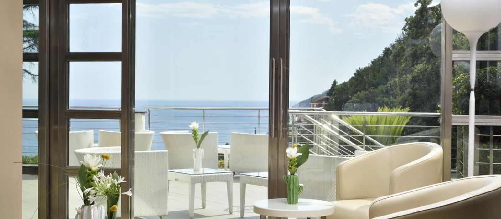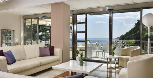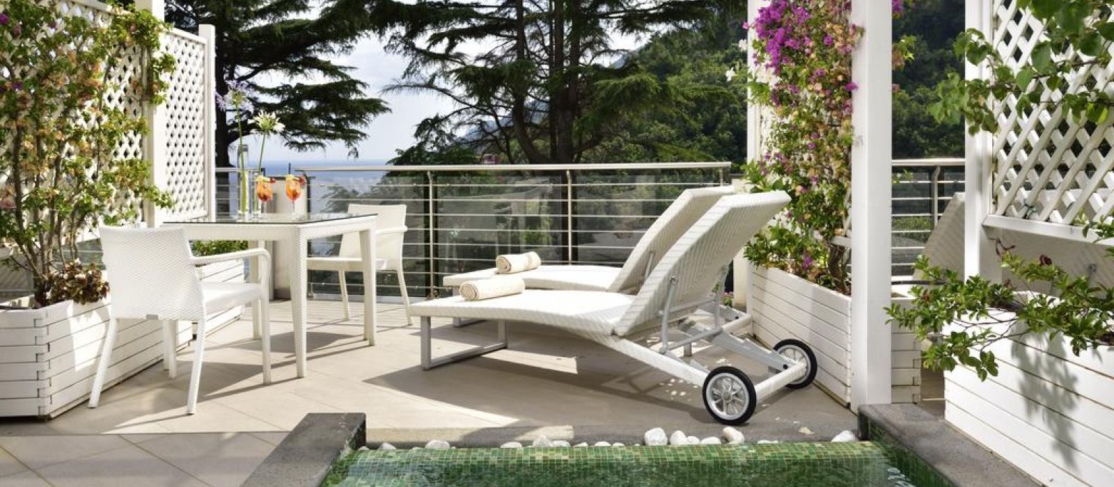 La piscine extérieure du Paradiso se trouve sur une terrasse avec un solarium et une vue imprenable sur la mer.