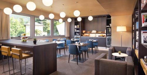 Le petit-déjeuner de cet établissement 4 étoiles consiste en un buffet sucré et salé qui comprend du pain frais, des viennoiseries et une sélection d'aliments biologiques.
