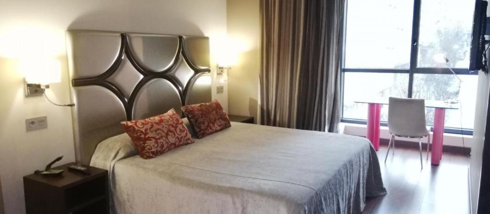 Les chambres modernes de l'Axis Vigo sont spacieuses et équipées de la climatisation et d'une télévision à écran plat. La salle de bains privative est pourvue d'articles de toilette gratuits, d'une baignoire ou d'une douche et d'un sèche-cheveux.