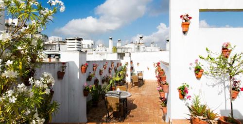 Admirez la vue sur Séville depuis le spacieux toit-terrasse du Patio al Sur, où vous pourrez profiter du soleil andalou.