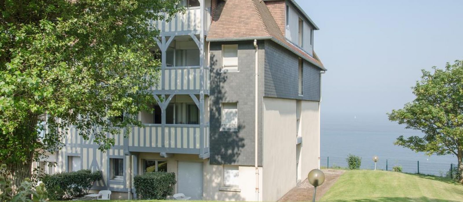 Implantée à proximité de Trouville, la résidence Les Tamaris surplombe la mer et vous offre une très belle vue sur la Côte Fleurie. Entourée d'un grand jardin privé, elle arbore une architecture normande et des bardages pastel qui font tout son charme. A l'intérieur, vous découvrirez des appartements cosy où tout est conçu pour votre confort. Vous pourrez profiter du beau temps pour vous reposer ou partager un repas sur votre loggia. En bonus, certains offrent même une vue sur la mer !