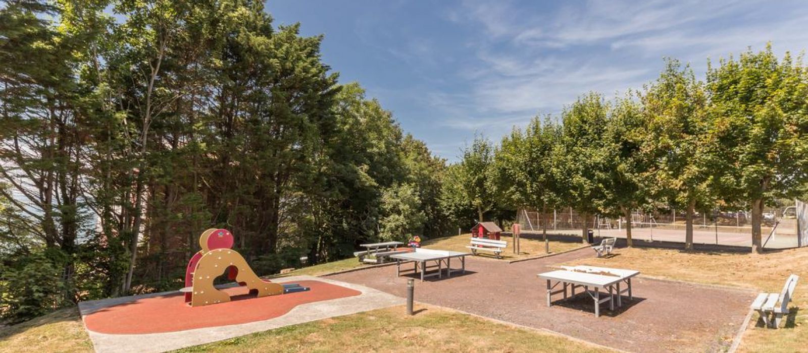 Pour rejoindre la plage qui se situe à 800 m, vous pourrez emprunter un chemin privé. Là-bas, vous aurez l'occasion de découvrir de nombreuses activités nautiques. Au sein de la résidence, nous avons aménagé un terrain de pétanque, un court de tennis et une salle de jeux.