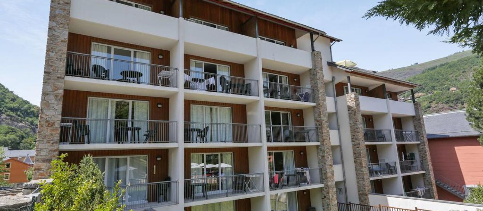 Située à Ax-les-Thermes, la résidence Les Trois Domaines profite d'un emplacement privilégié aux portes d'Andorre. Fidèle à l'architecture régionale, elle s'intègre parfaitement au décor naturel qui l'entoure. A l'intérieur, vous découvrirez des appartements à la décoration légère et conçus pour votre confort. A tout moment, vous aurez le privilège de profiter de votre balcon ou votre loggia pour partager un repas en famille ou contempler le panorama.
