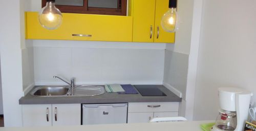 Chacun des appartements du complexe Los Aguacates dispose d'une cuisine dans laquelle vous pourrez préparer vos repas et d'un salon où vous pourrez ensuite vous détendre.