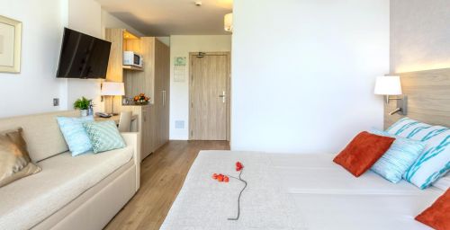 Les équipements de l'apart'hôtel, comprenant une piscine extérieure et des terrasses entourées de jardins luxuriants, vous permettront de profiter au maximum du climat extraordinaire de l'île. Vous pourrez également profiter du calme du parc naturel de S'Albufera voisin et de l'historique station balnéaire d'Alcudia.