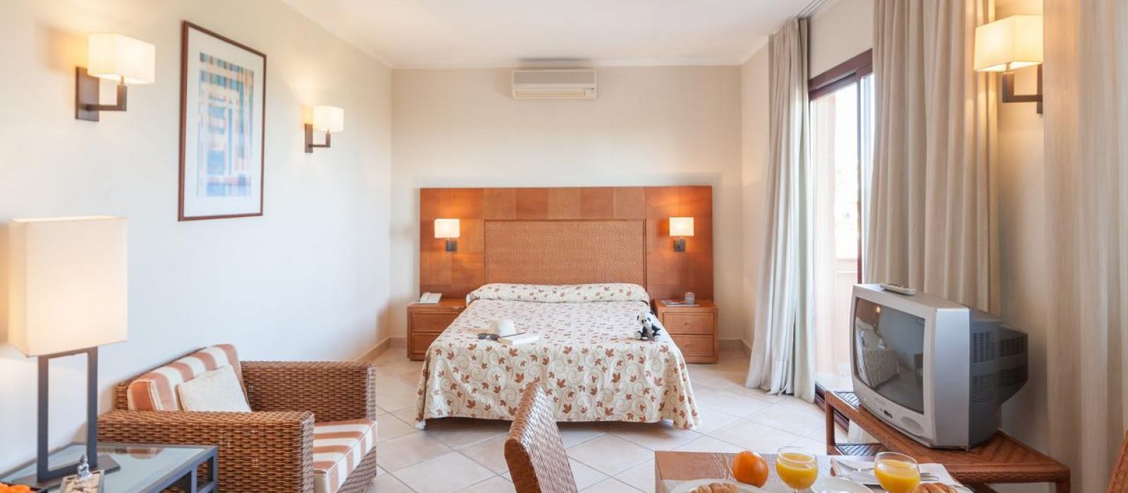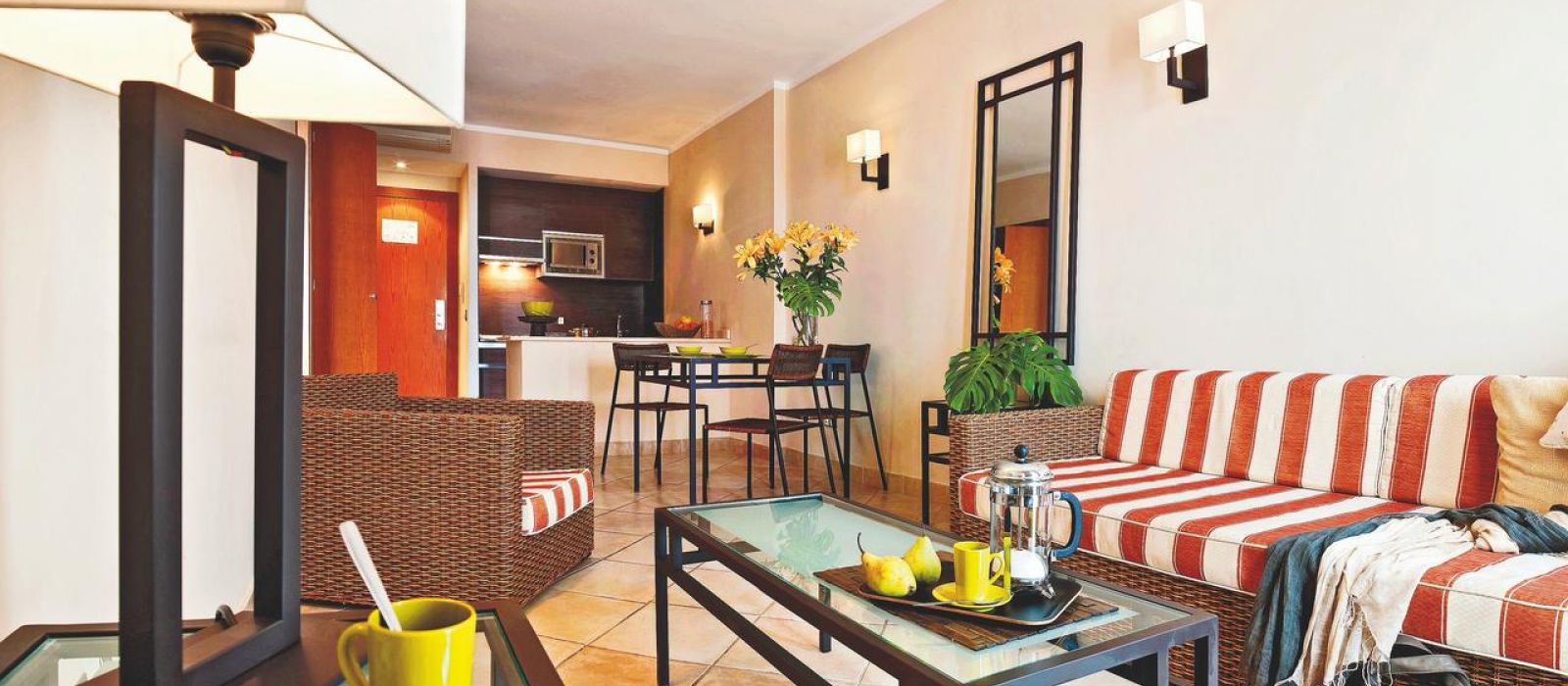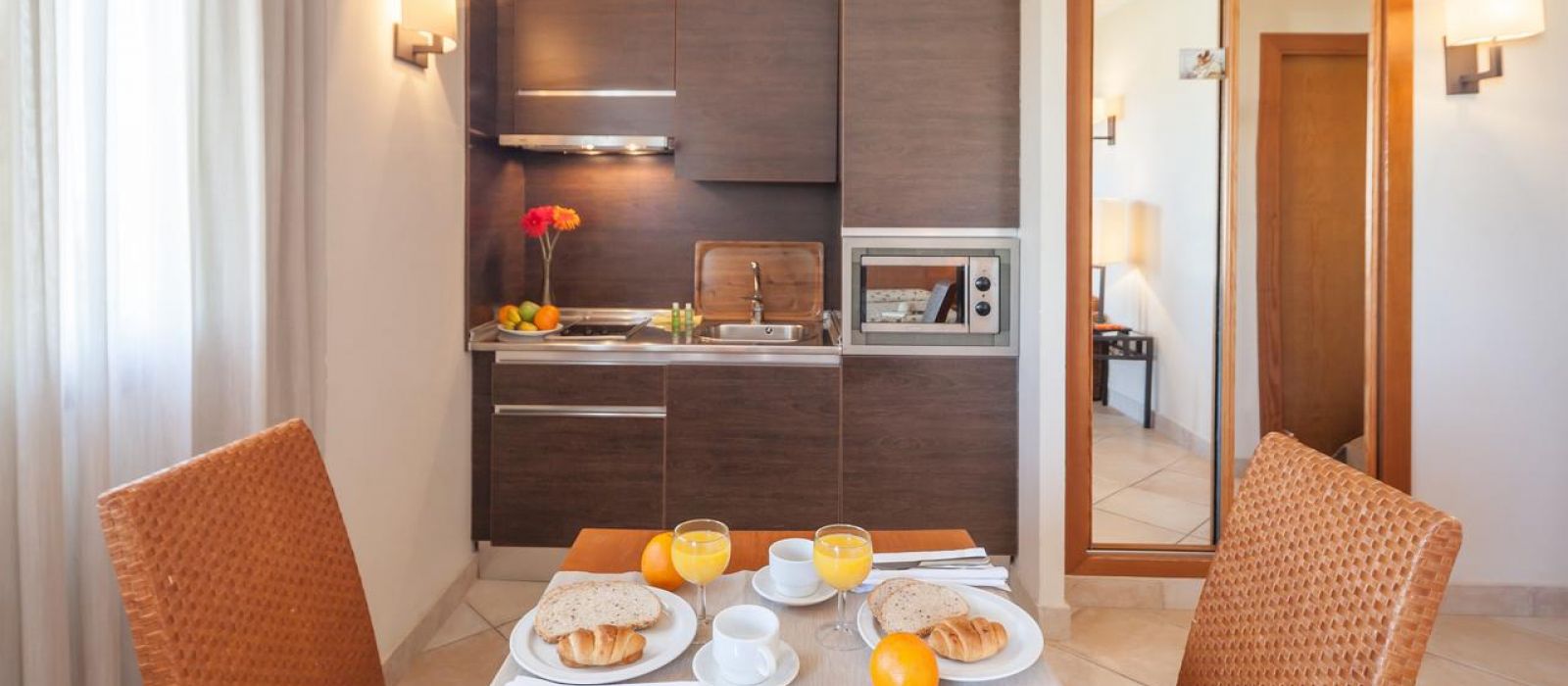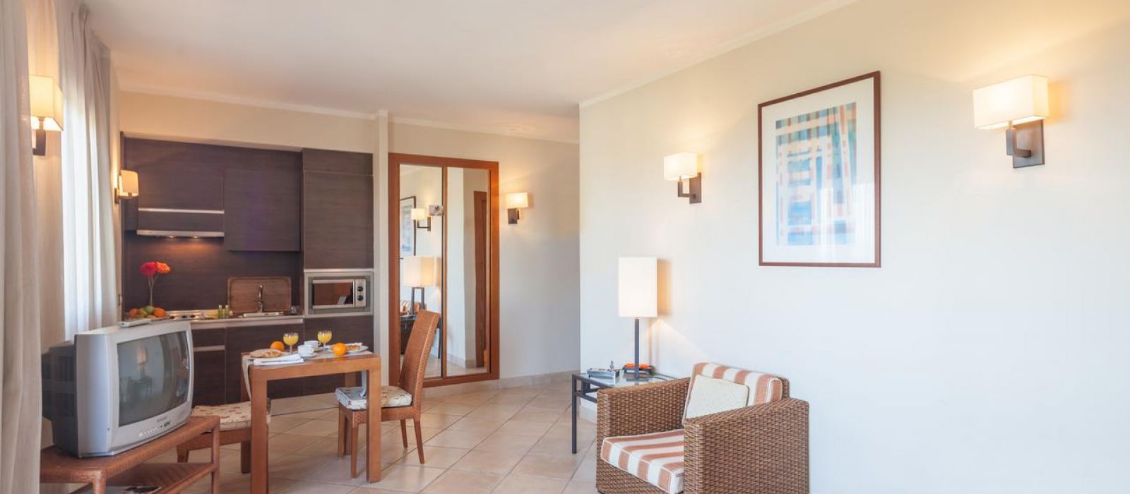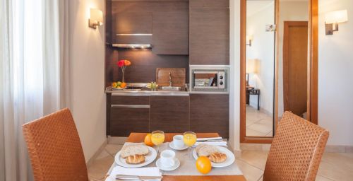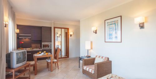Décorés dans des tons méditerranéens chaleureux, tous les hébergements de l'établissement sont climatisés. Ils disposent d'un balcon privé et d'un canapé-lit. Leur cuisine est équipée d'un réfrigérateur et d'un micro-ondes. Un coffre-fort est disponible moyennant des frais supplémentaires.