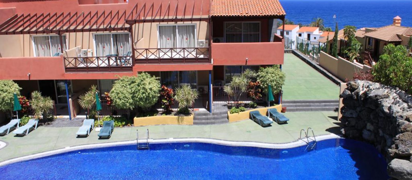 Toutes ces installations extérieures se situent dans un cadre luxuriant magnifique. Les appartements spacieux de l'établissement disposent d'un superficie de 60 m². La plupart d'entre eux possèdent une terrasse ou un balcon offrant une vue imprenable sur la mer.