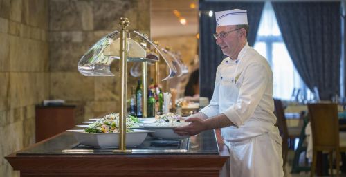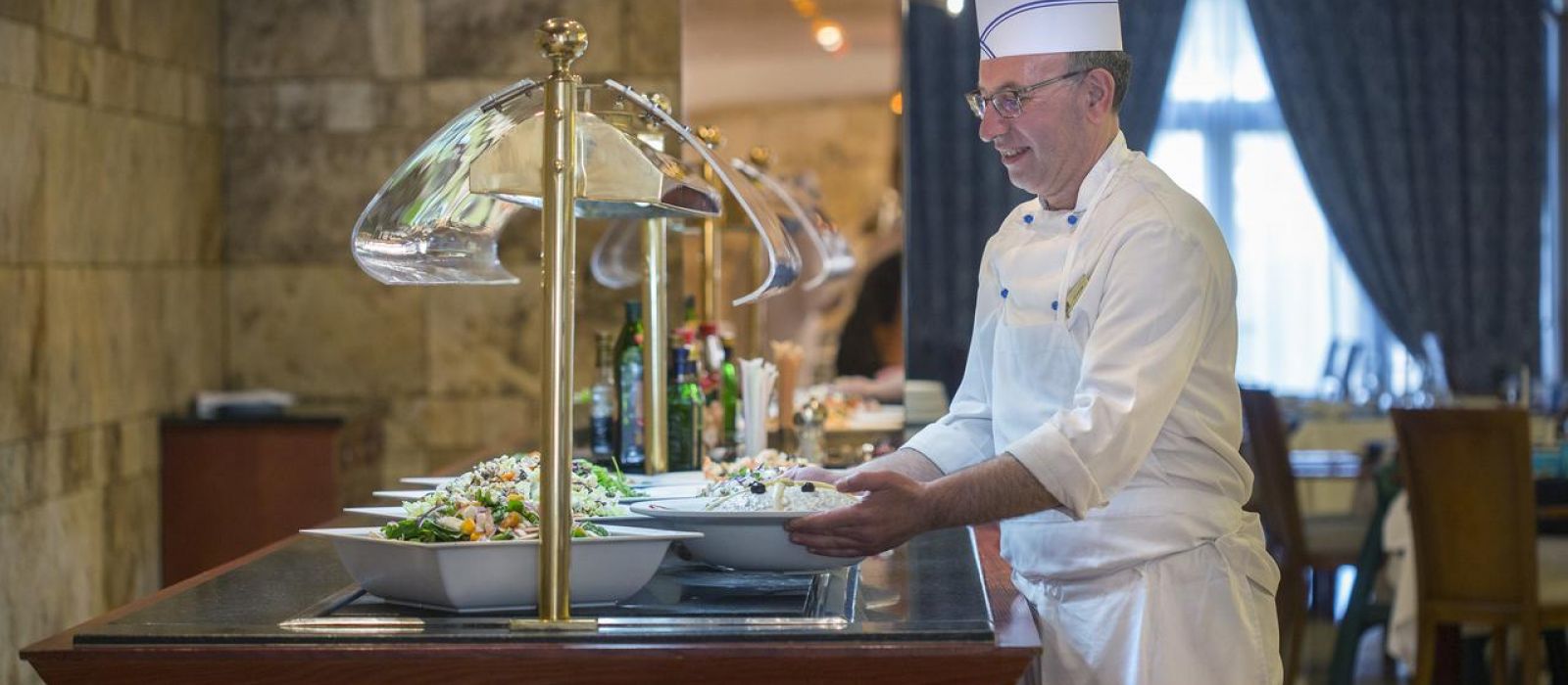 Son restaurant met en valeur des des plats majorquins sous forme de buffet.