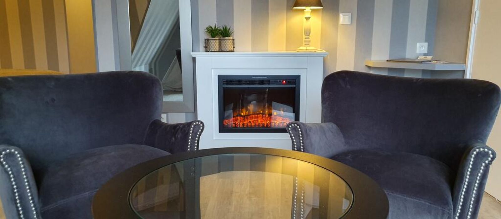 Vous apprécierez également le confortable salon agrémenté d'une cheminée, lieu idéal pour lire les journaux mis à votre disposition.