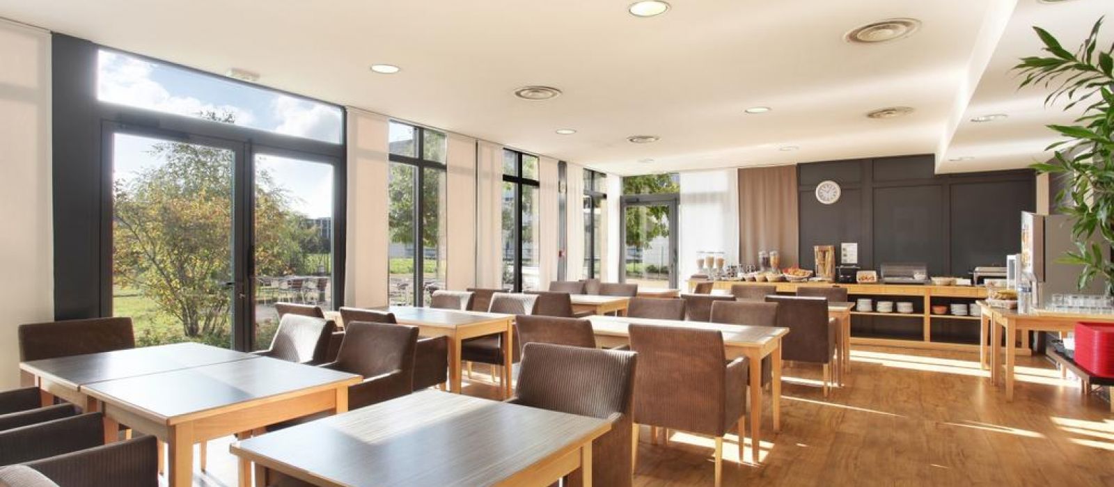 Le petit-déjeuner est servi chaque matin dans la salle à manger, qui s'ouvre sur une terrasse ombragée, tandis que des boissons et des collations sont disponibles au distributeur automatique. Moyennant des frais supplémentaires, vous pourrez utiliser la photocopieuse, le fax et la buanderie. Un service de repassage est également assuré.
