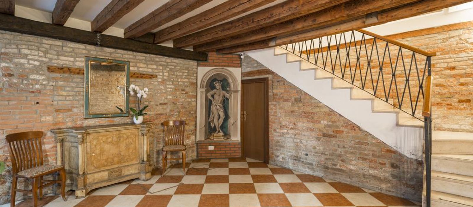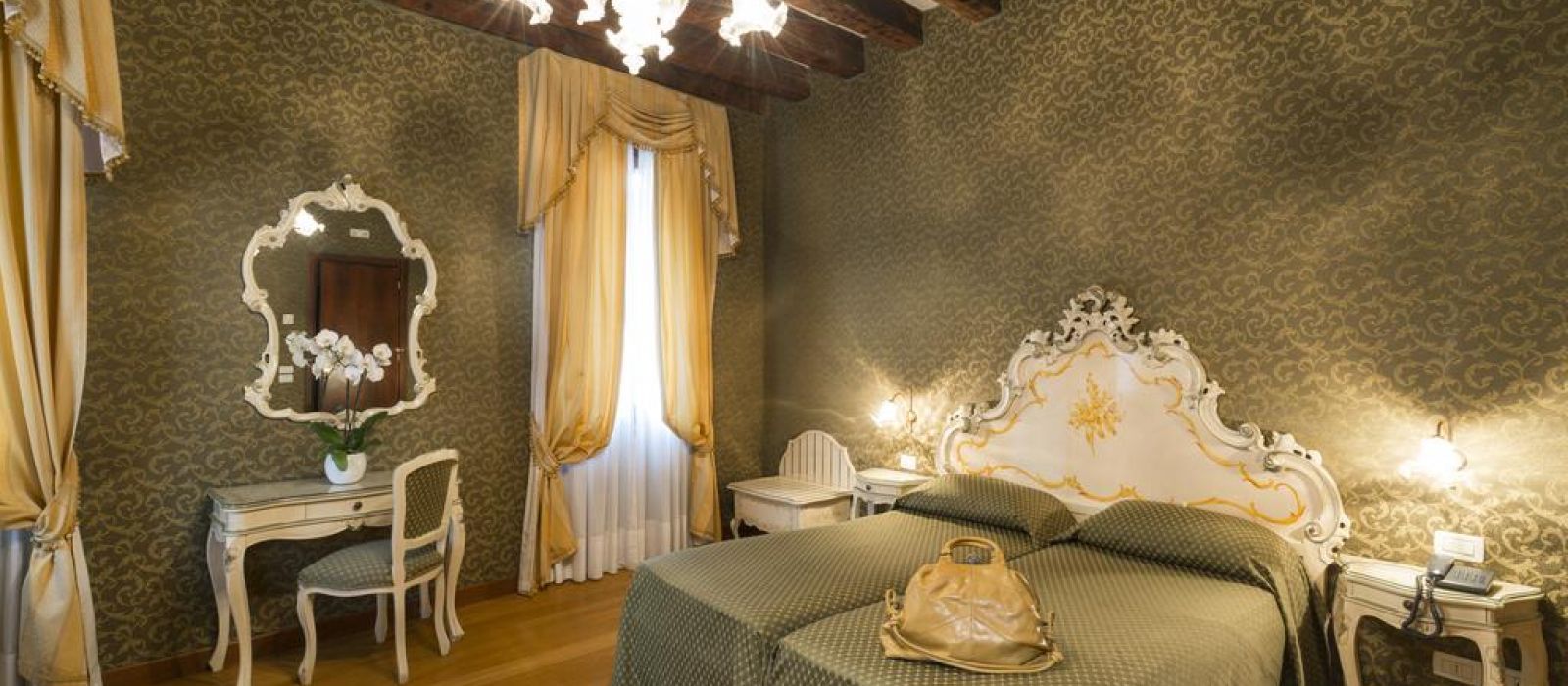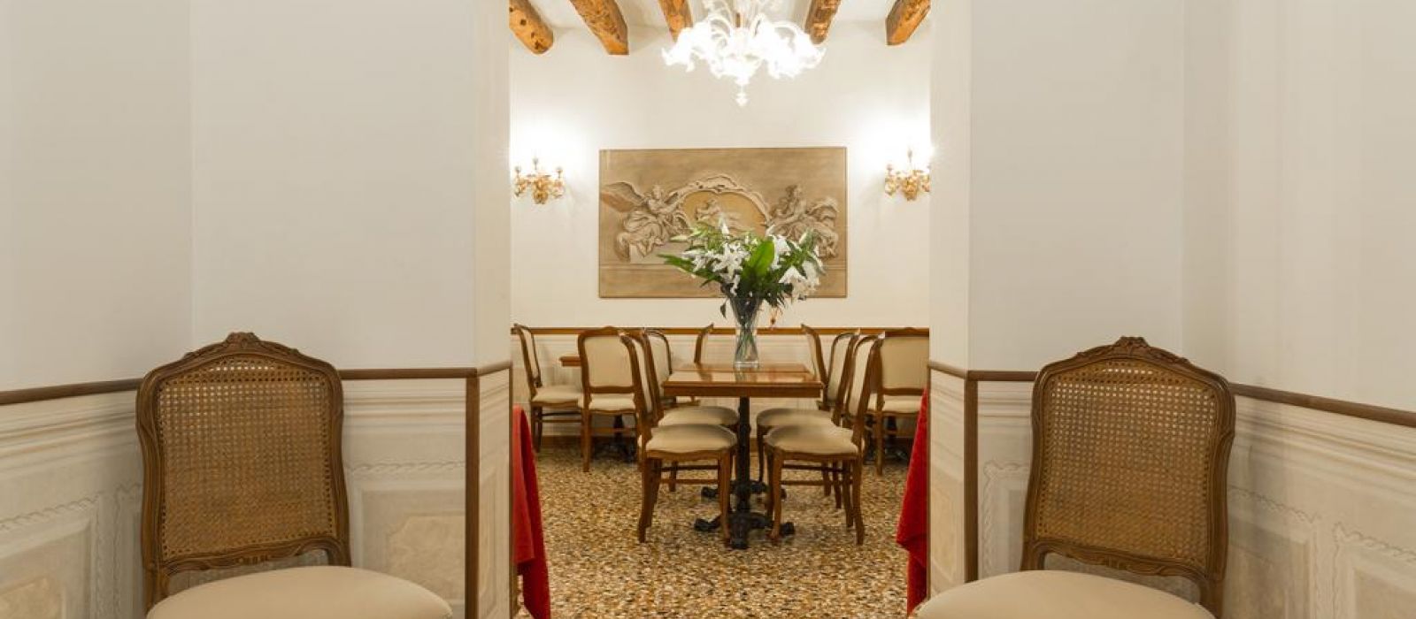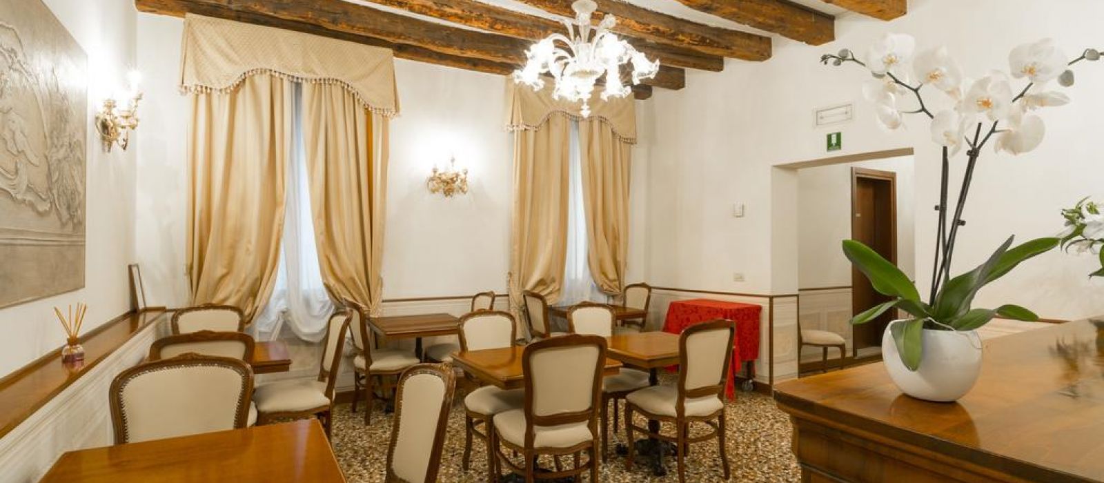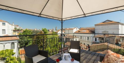 Le Palazzo Guardi se compose de deux bâtiments adjacents : l'un dispose d'un magnifique salon original, avec une vue splendide sur le canal. L'autre propose une belle salle à manger ornée de poutres en bois authentiques du XVe siècle.