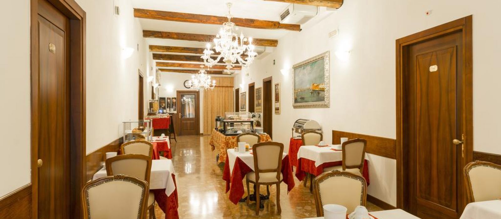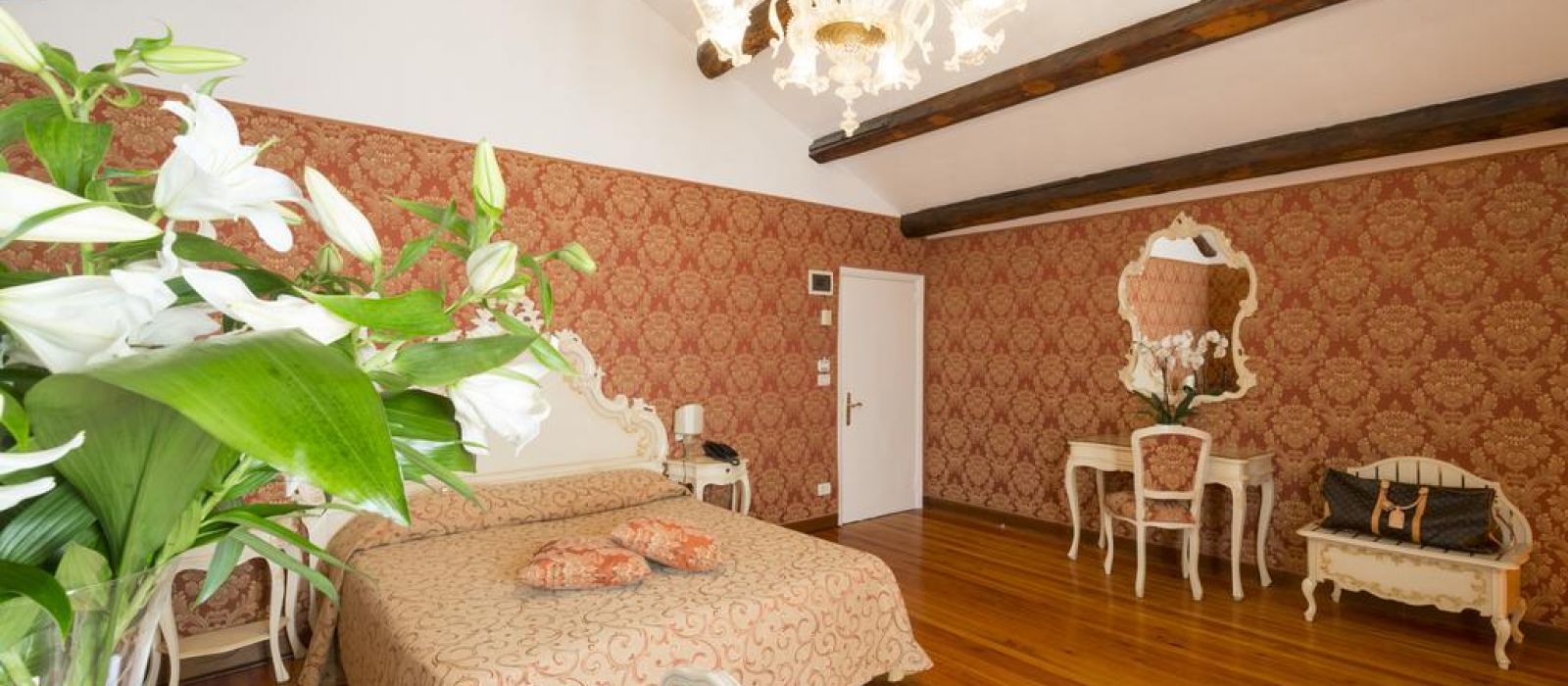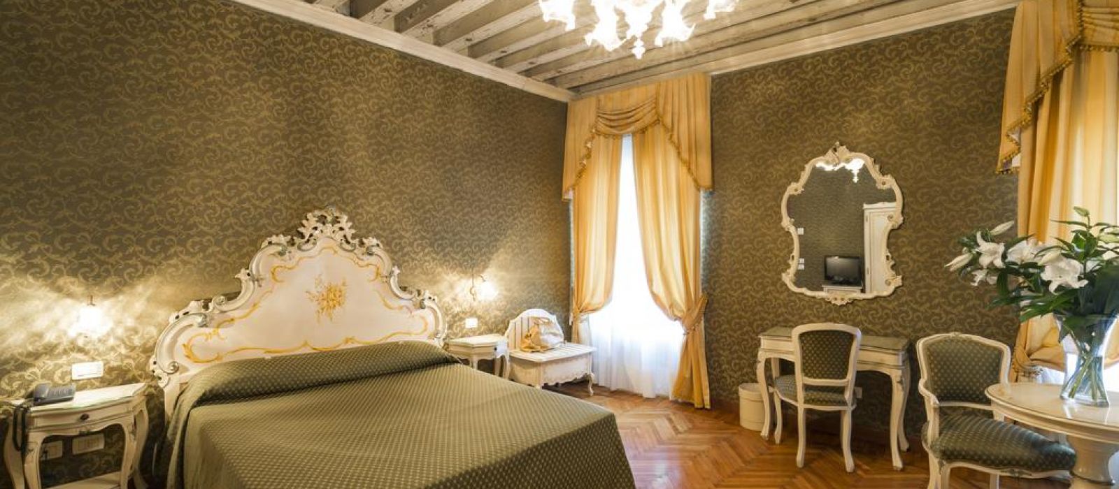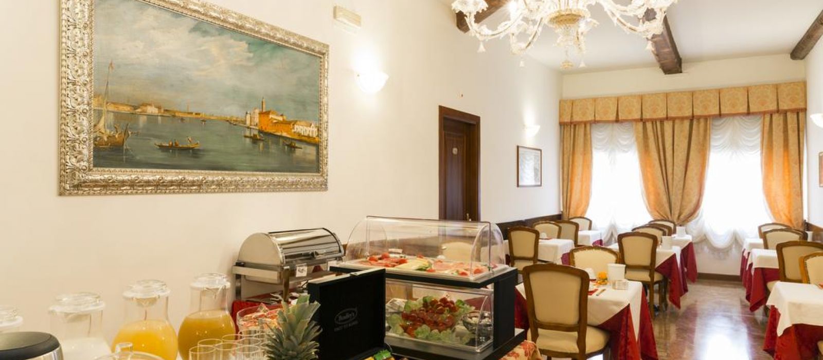 Le Palazzo Guardi se compose de deux bâtiments adjacents : l'un dispose d'un magnifique salon original, avec une vue splendide sur le canal. L'autre propose une belle salle à manger ornée de poutres en bois authentiques du XVe siècle.