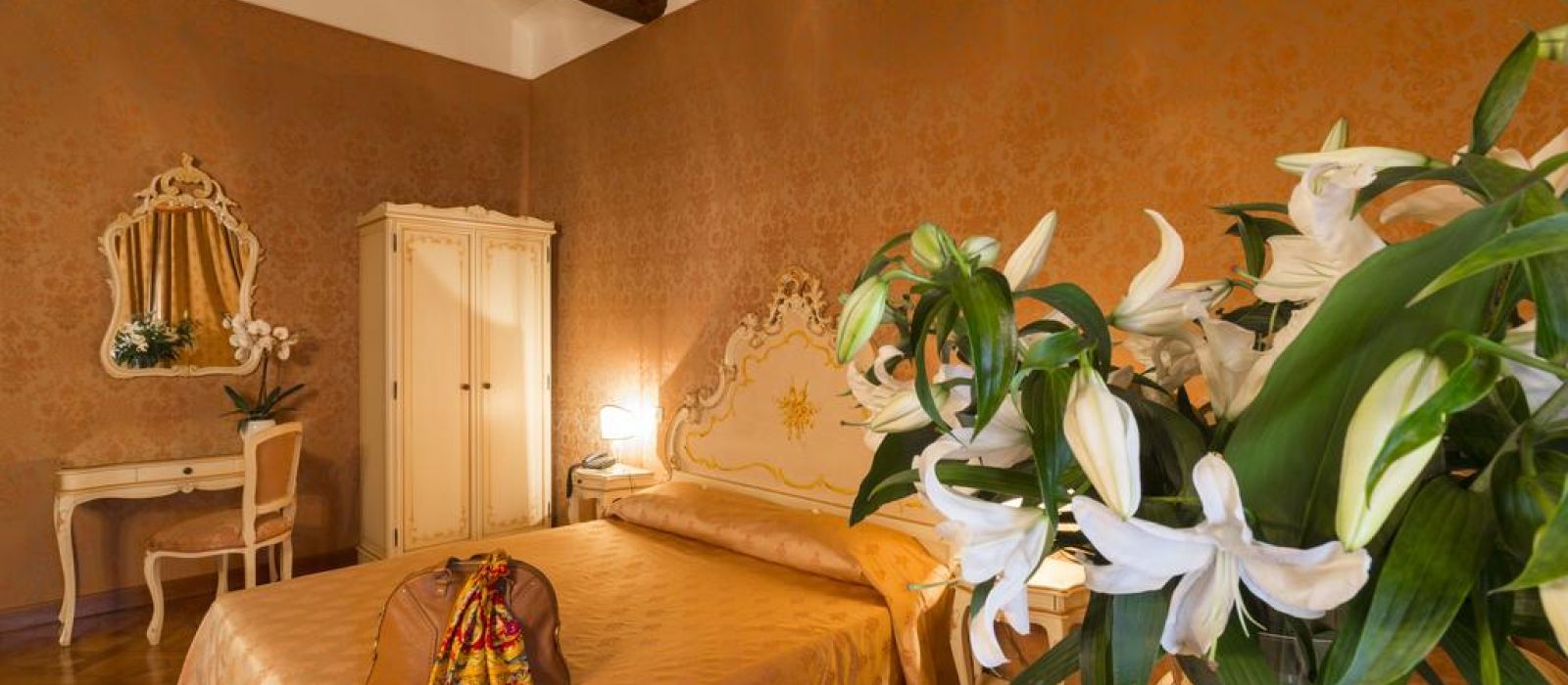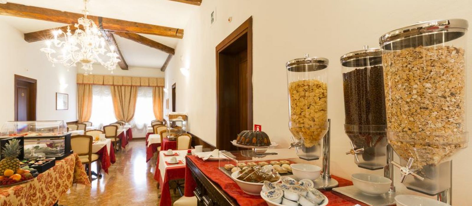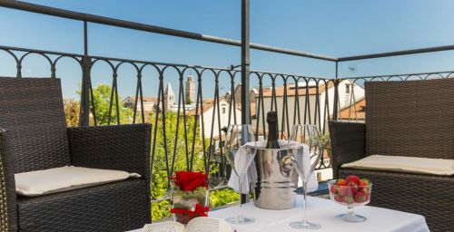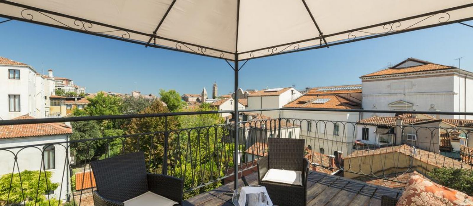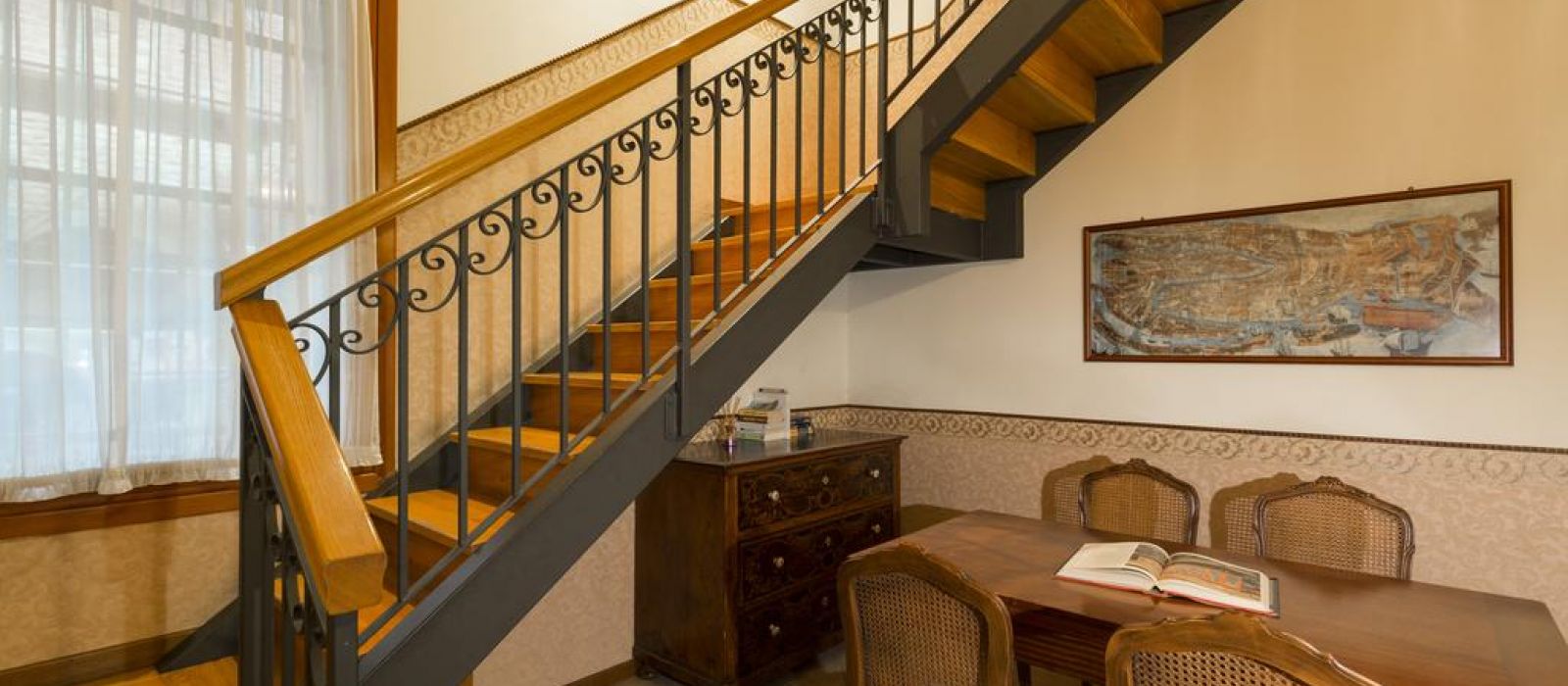 Le Palazzo Guardi se compose de deux bâtiments adjacents : l'un dispose d'un magnifique salon original, avec une vue splendide sur le canal. L'autre propose une belle salle à manger ornée de poutres en bois authentiques du XVe siècle.