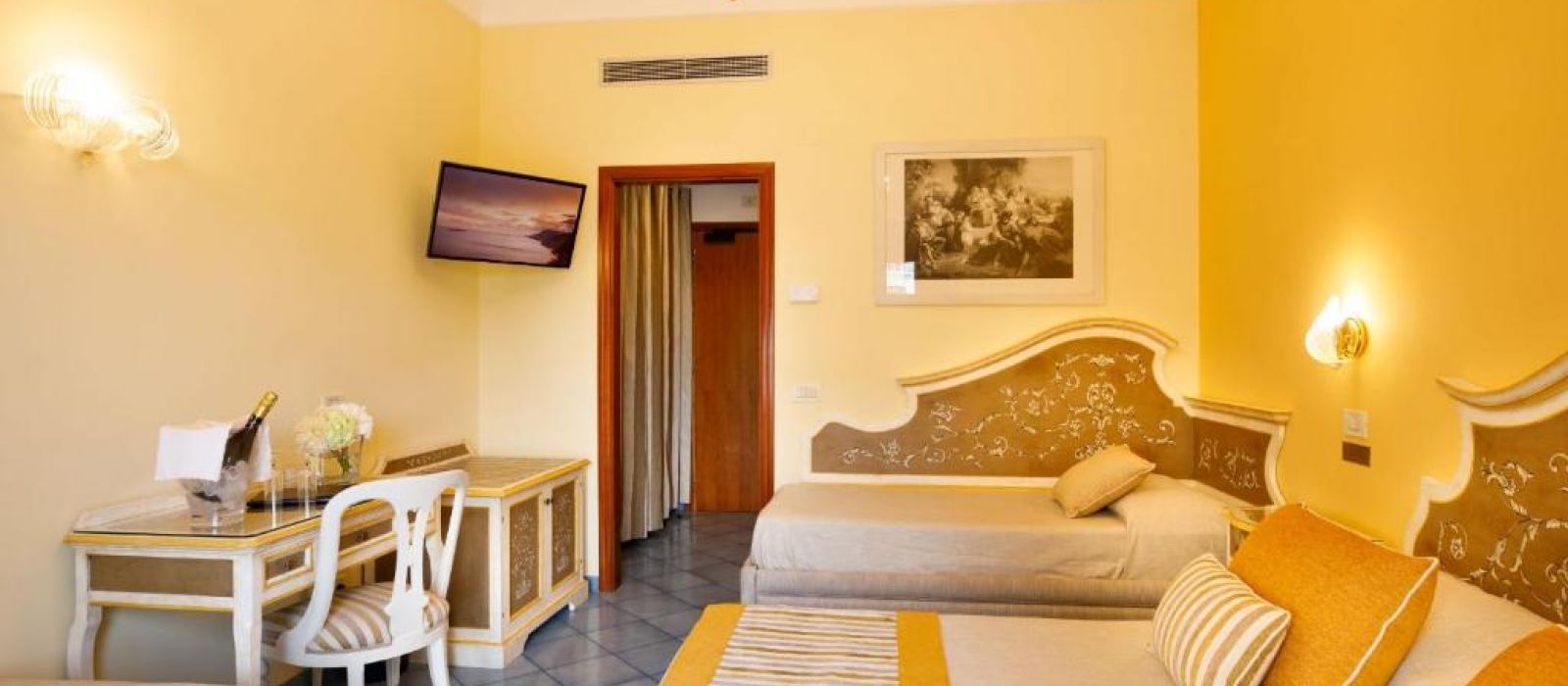 Vous pouvez bénéficier d'une réduction Genius dans l'établissement Hotel Zi' Teresa ! Connectez-vous pour économiser. L'Hotel Zi' Teresa est situé à Sorrente, juste en face de la gare et de la Piazza Tasso. Il propose un grand jardin et une terrasse offrant une vue magnifique sur la mer. Cet établissement confortable arbore une décoration élégante dans ses chambres et parties communes. Les hébergements sont équipés d'une télévision par satellite et de la climatisation. Les chambres doubles possèdent un balcon. Le petit-déjeuner buffet est servi tous les matins. Le restaurant sur place sert de délicieux plats italiens et internationaux. Vous séjournerez à moins de 10 minutes à pied du centre de Sorrente et de la gare. Depuis cette dernière, il est possible de se rendre à Pompéi et Naples en train ou à Positano en bus. C'est le quartier préféré des voyageurs visitant Sorrente, selon les commentaires clients indépendants.